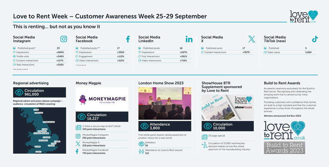 Thought people knew all there was to know about renting? It might be time to think again as the outcomes of Love to Rent Week’s triumph reveal a noticeable surge in key metrics related to customer awareness during the week-long event.