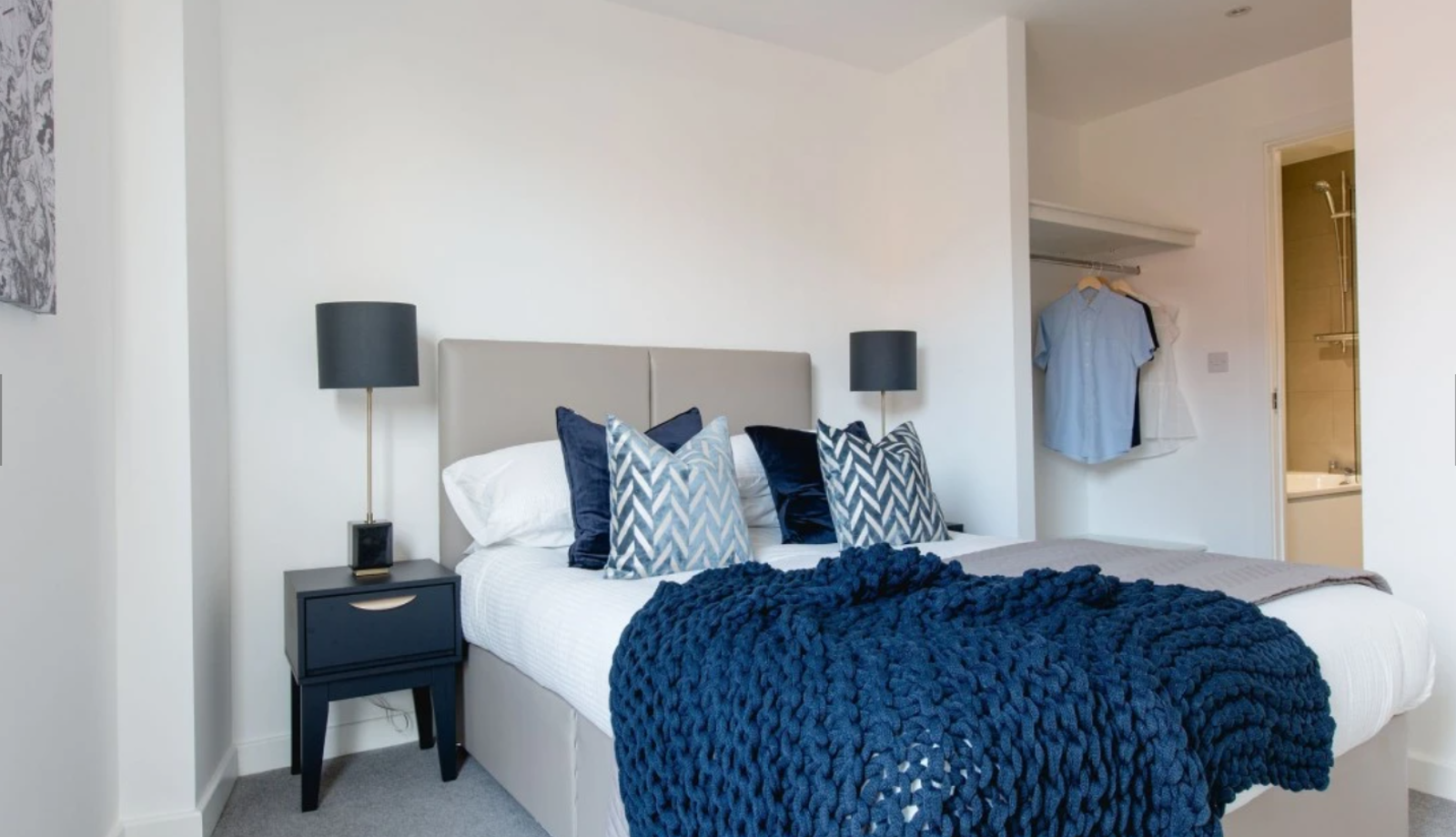 The apartment features two double bedrooms with a double -sized beds and built-in wardrobes. The bedrooms and bathrooms have been fitted with high-quality and modern finishes to give that luxury hotel feel to your new home.