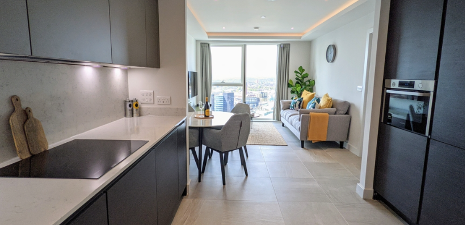 - Large one bedroom apartment with open plan lounge, kitchen and dining space
