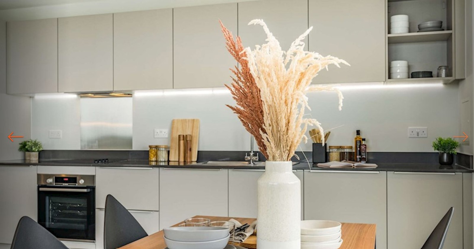 Open plan, sleek and modern with Bosch & Electrolux appliances including electric hob and oven. Inclusive of a fridge freezer, dishwasher, and a washer/dryer tucked away in a laundry cupboard. Room to dine with dining table and chairs.