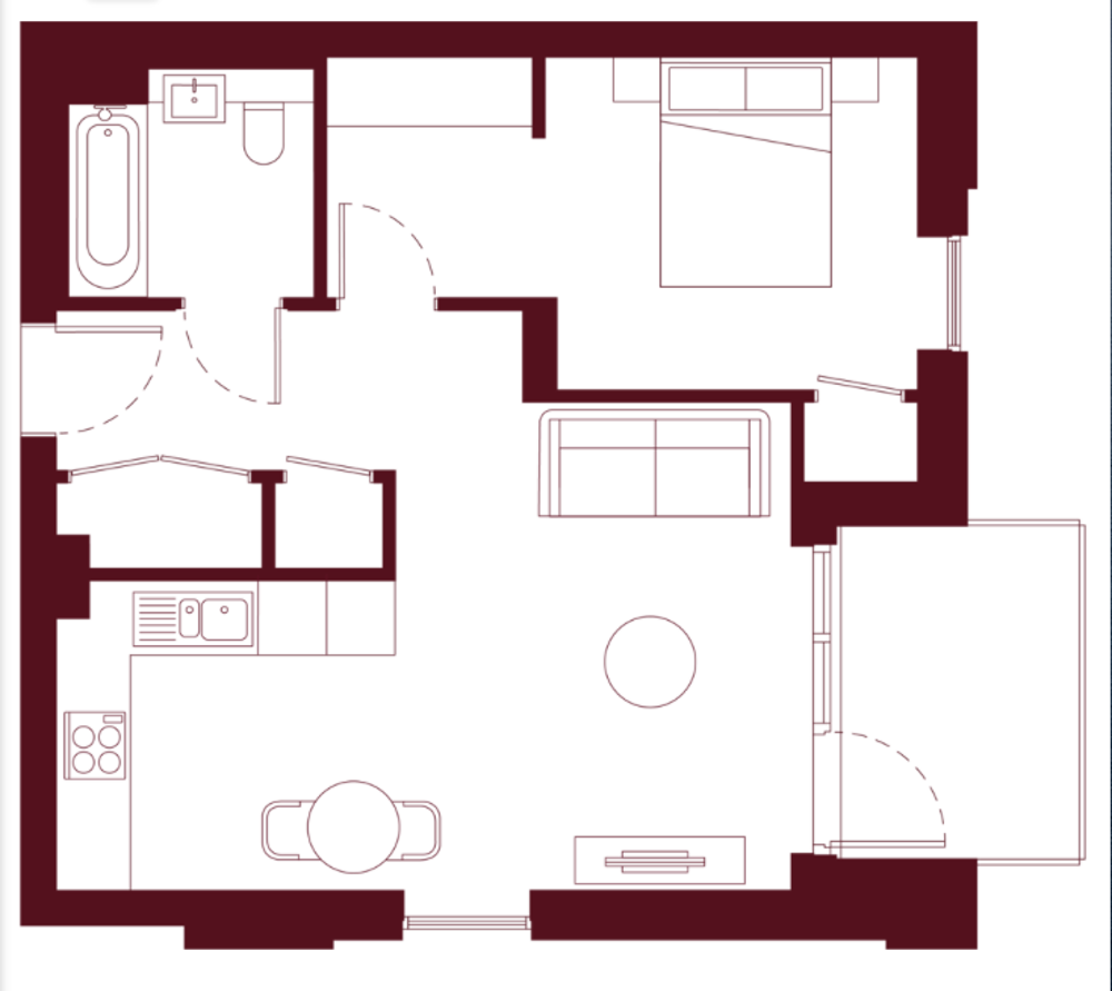 Our one-bedroom apartments offer a variety of layouts and sizes, with open-plan kitchens with integrated appliances, contemporary bathrooms, built-in wardrobes, and keyless entry.
