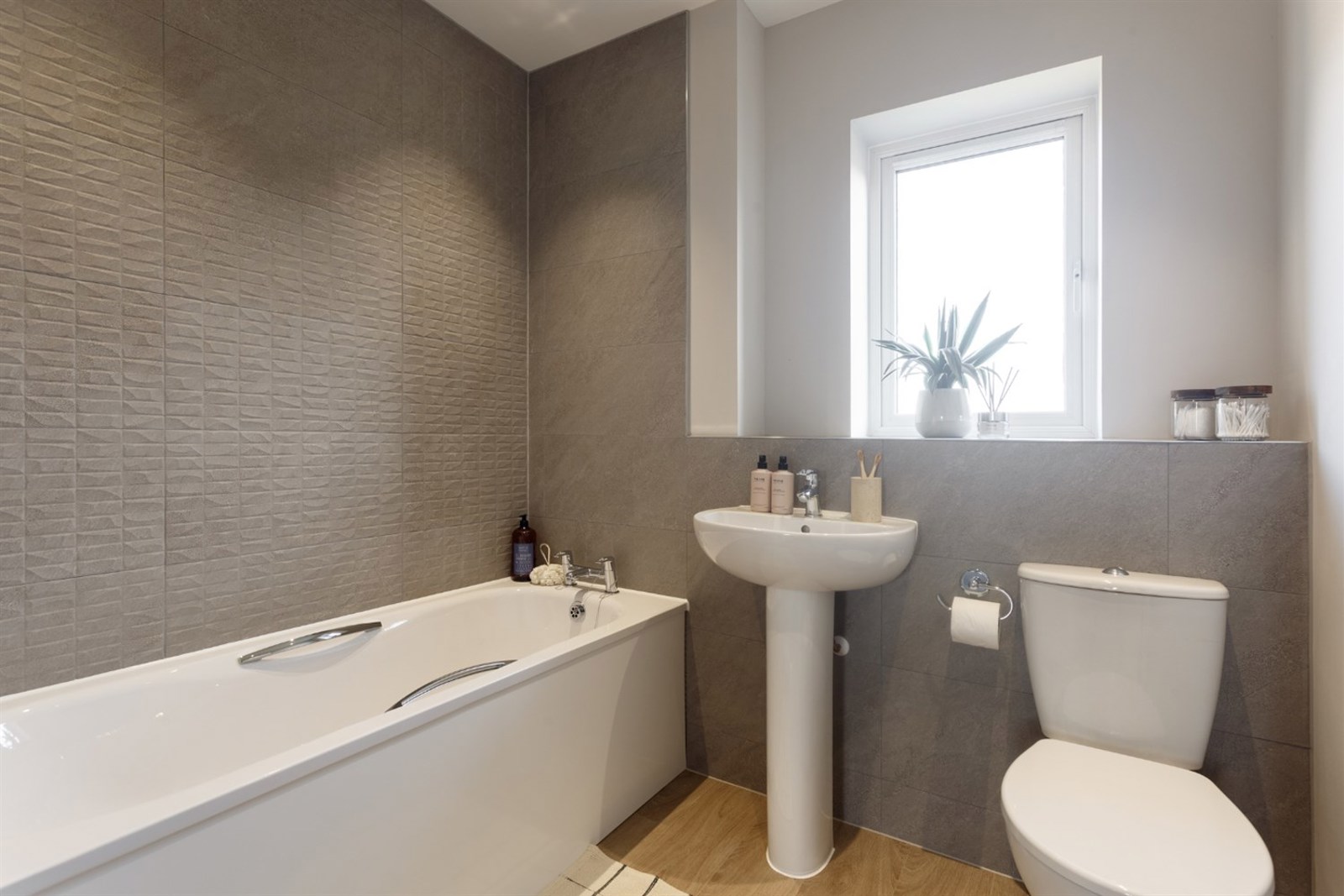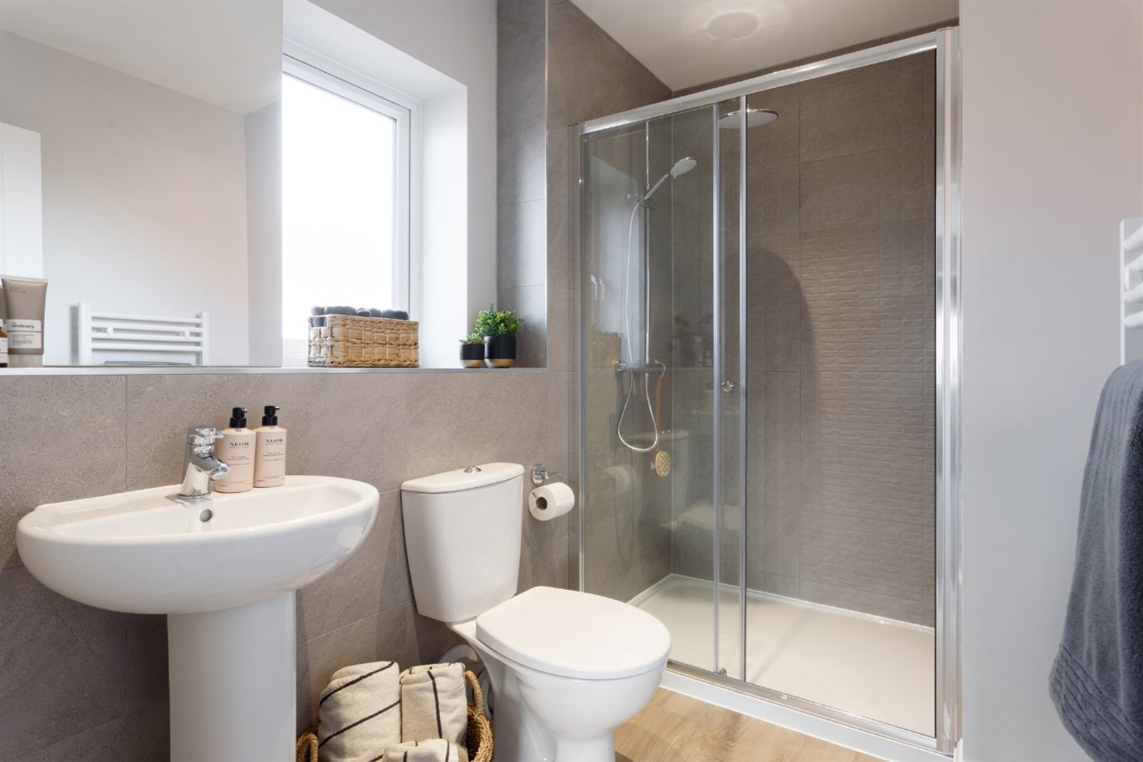 The house bathroom has contemporary, quality tiling throughout and provide quality chrome bathroom fittings, including a heated towel radiator and large mirror. The main bathroom provides a bath with shower. En-suite to primary bedroom with rainfall shower. Additional WC to the ground floor for added convenience.