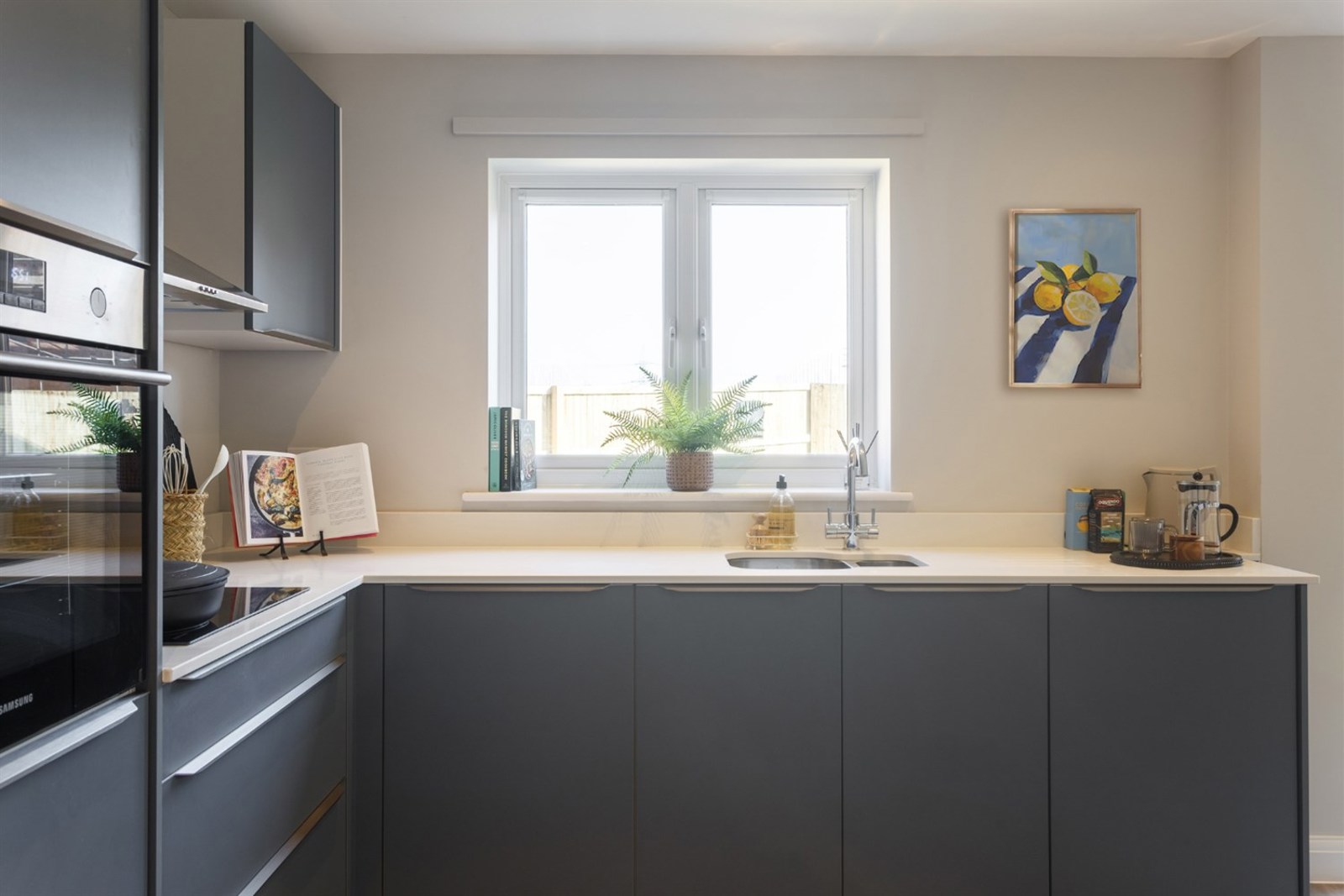 All bedrooms are designed with comfort and space in mind. Bedrooms are sleek, spacious and modern, and allow lots of natural light into the room. The primary bedroom includes bespoke fitted wardrobes with full height mirror, plus en-suite with rainfall shower. Second double bedroom, with a third single bedroom.