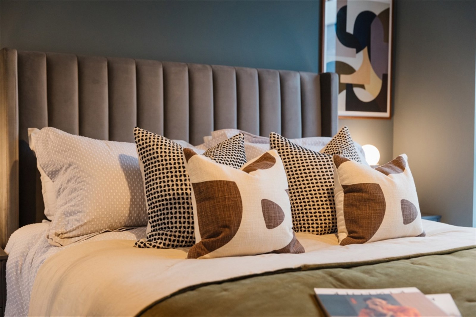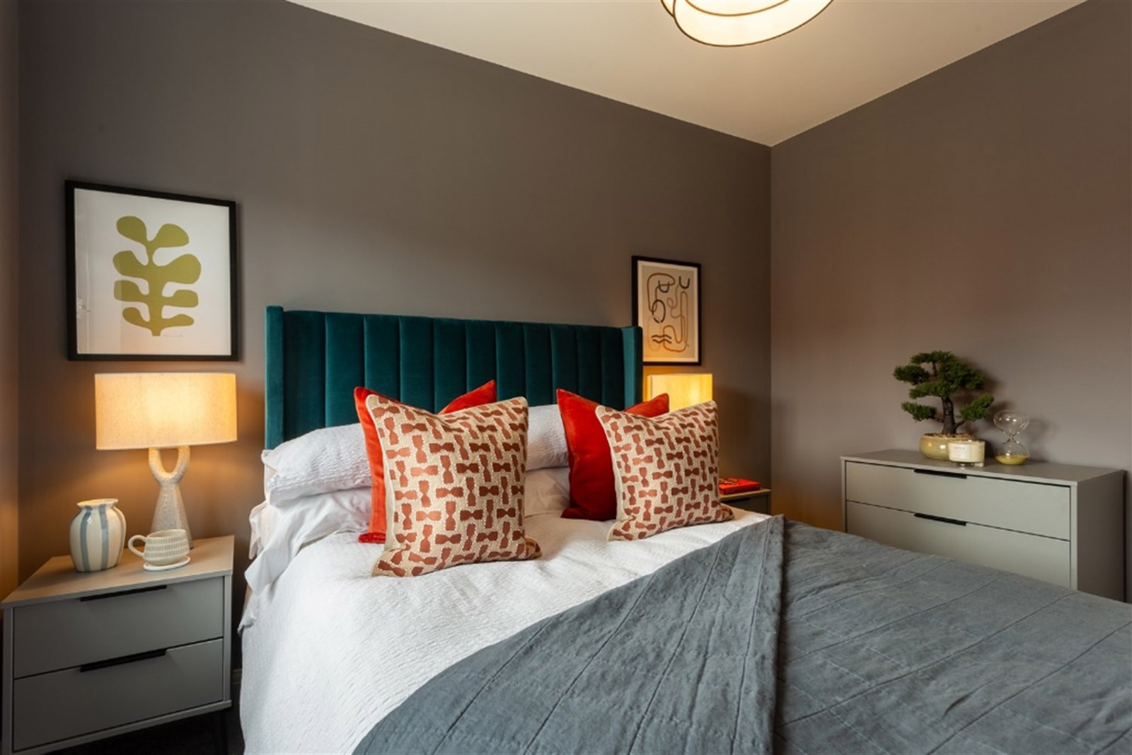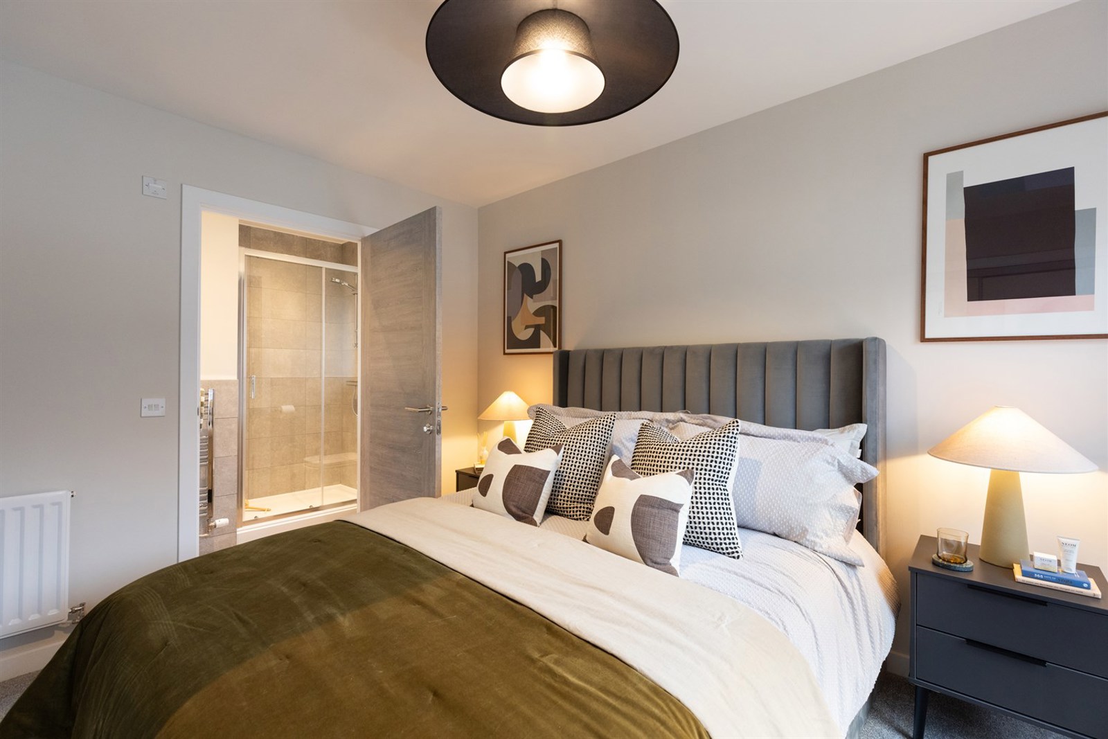 All bedrooms are designed with comfort and space in mind. Bedrooms are sleek, spacious and modern, and allow lots of natural light into the room. The primary bedroom includes bespoke fitted wardrobes with full height mirror, plus en-suite with rainfall shower. Second double bedroom, with a third single bedroom.