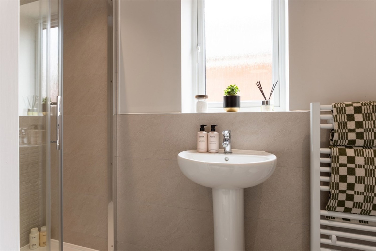 The house bathroom has contemporary, quality tiling throughout and provide quality chrome bathroom fittings, including a heated towel radiator and large mirror. The main bathroom provides a bath with shower. En-suite to primary bedroom with rainfall shower. Additional WC to the ground floor for added convenience.