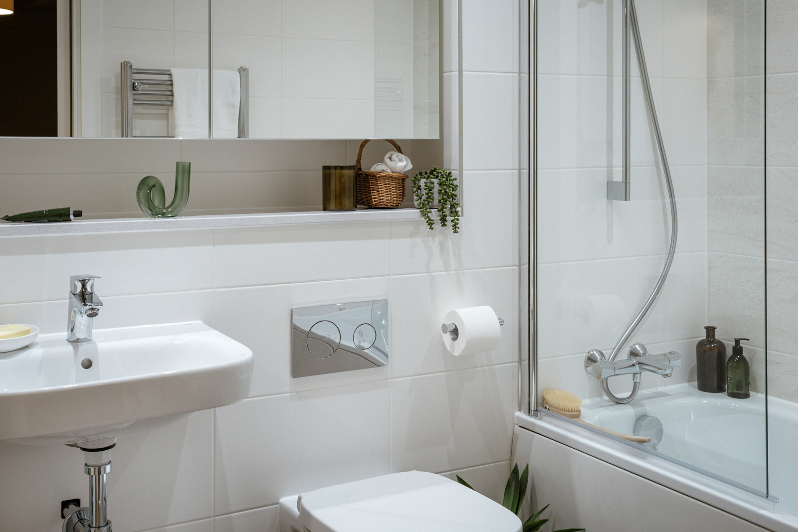 Bathrooms all have power showers, a full-length mirror, a double mirrored wall cabinet above the sink with integrated toothbrush/shaver charging point and towel rail.