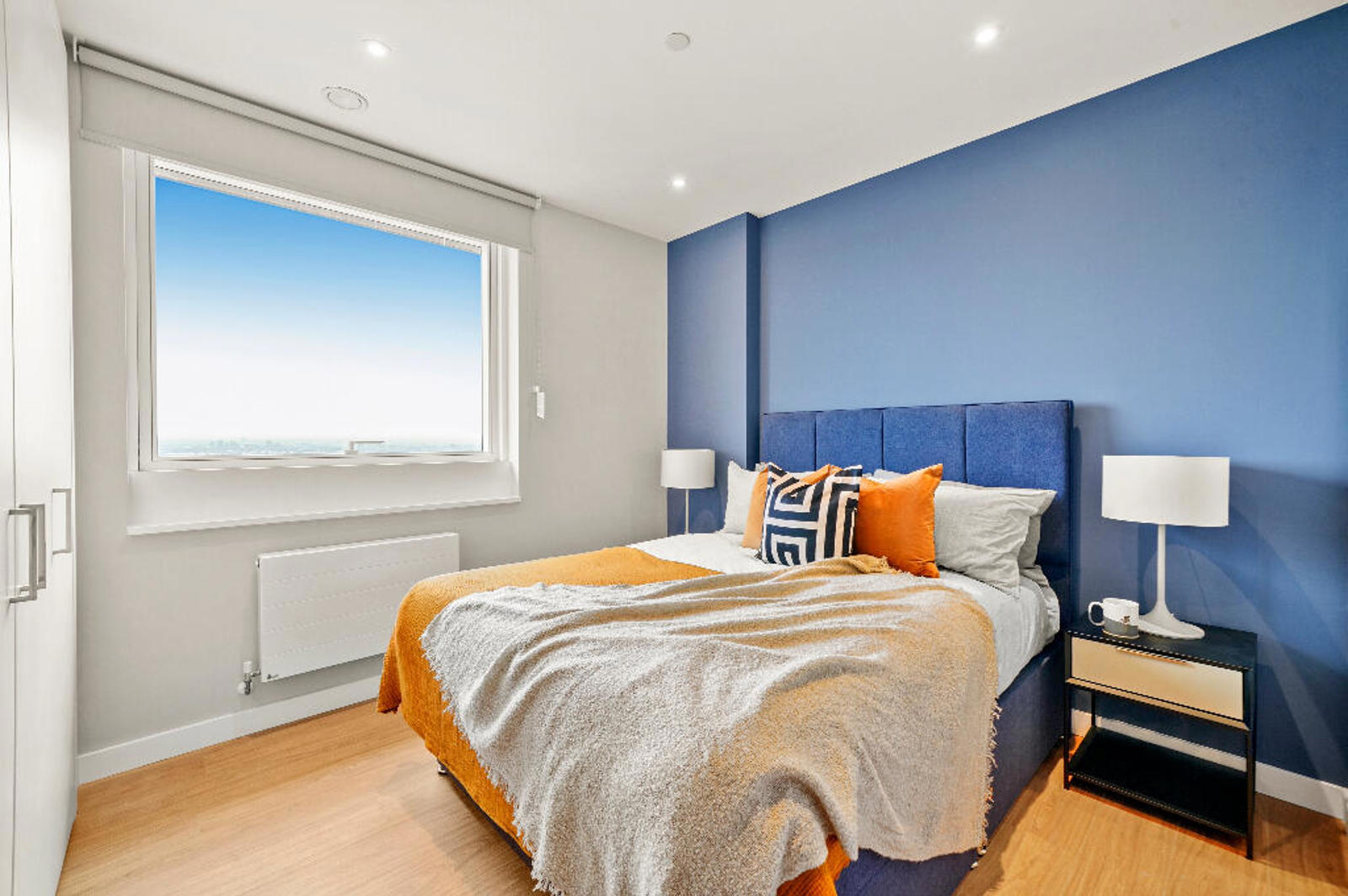 This 2 bedroom apartment is located on the 9th floor of Skylark Point, comes fully furnished with premium interior finishes and is available to rent from. Facing North East this home benefits from views of the Olympic Park, the greenery of the Wetlands and the city skyline, while allow natural light to flood in. The open plan kitchen and living area features floor to ceiling windows, maximising natural light, and leads out to a private balcony. With a family bathroom, this home also features a fully integrated kitchen, spacious fitted wardrobe and wooden floors throughout, and other home tech includes keyless entry and Hyperoptic Wi-Fi. The master room’s has a spacious ensuite, creating more privacy and space if you’re sharing.