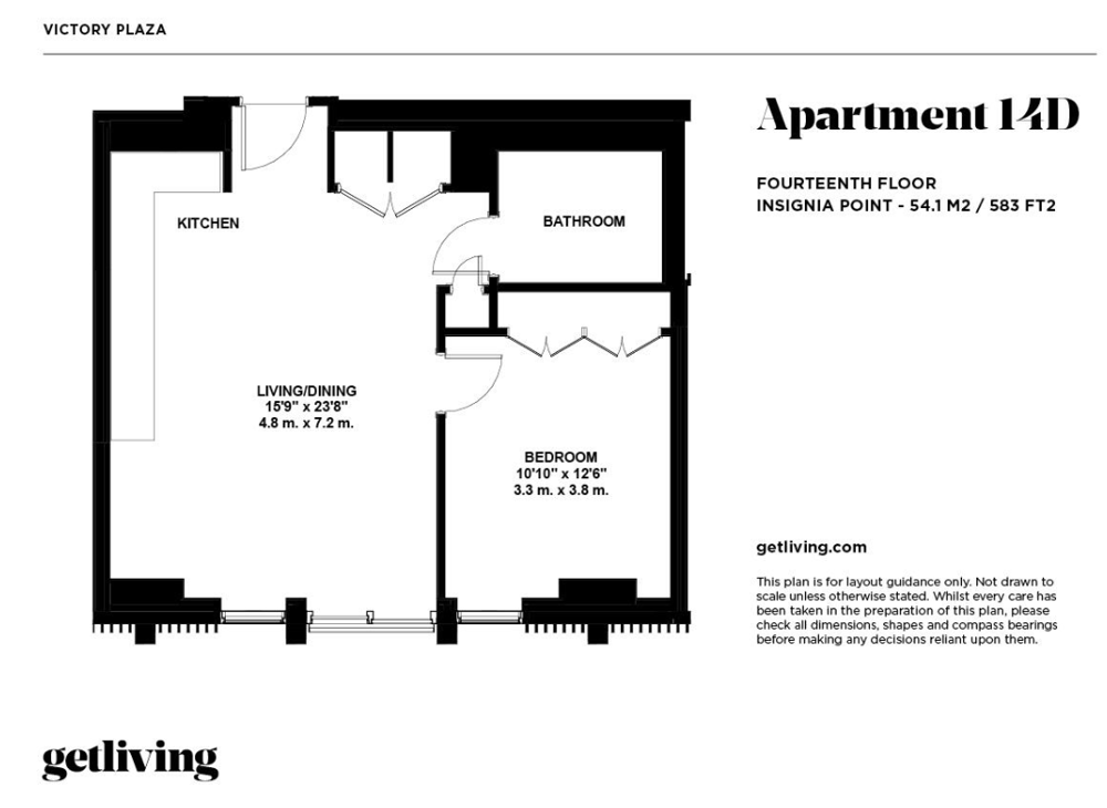 Located on the 14th floor of Insignia Point, this light and bright, one and a half bedroom, one bathroom home in Victory Plaza is available to rent.
