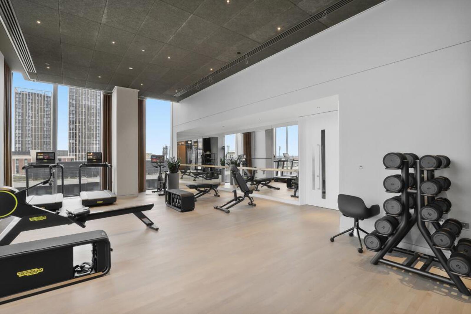 Living in Portlands Place means there is more for you to enjoy beyond your home. The building’s completely unique double-heighted Skybridge on the 10th floor is exclusive for residents and their visitors, featuring co-working spaces, a fitness suite complete with a spin studio, a wellness room and screening room. Plus, a fully-equipped bookable kitchen with dining room with seating for 25 people and direct access to the roof terrace, the perfect spot for hosting celebrations or simply connecting with neighbours. Get connected in all communal areas with free Wi-Fi in the Skybridge and lobbies.