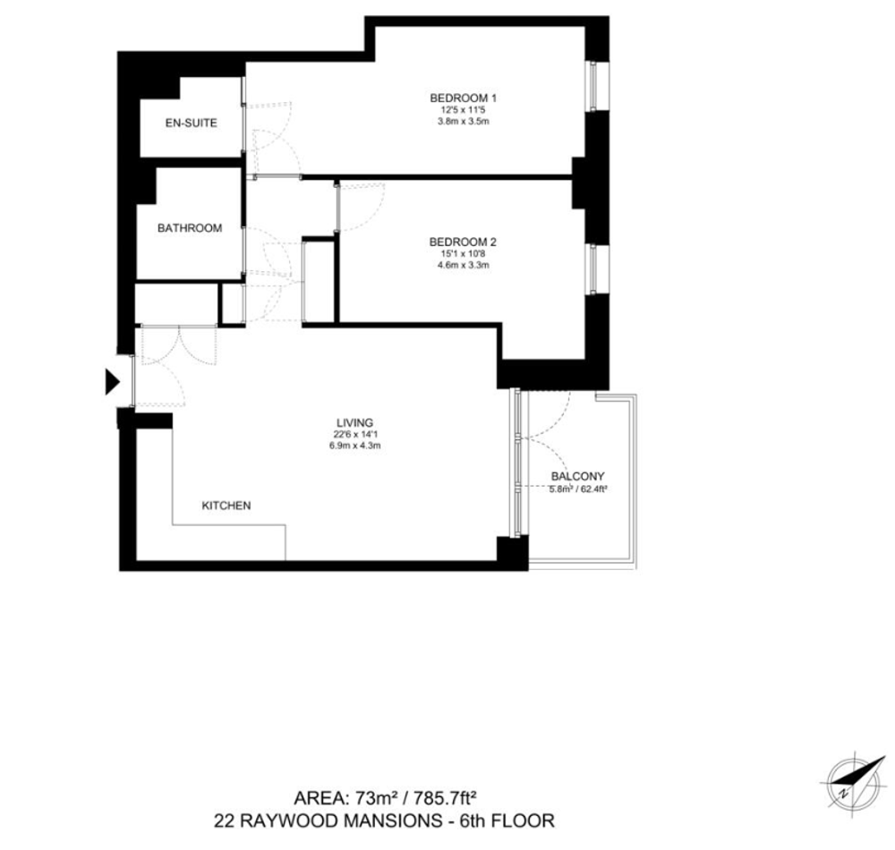 Located on the 6th floor of Raywood Mansions, this light and bright, two bedroom, two bathroom home is available to rent fully-furnished.