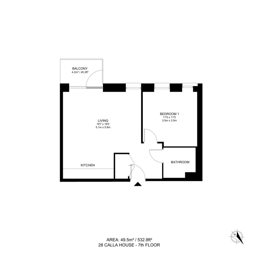 Located on the 7th floor of Calla House, this light and bright, one bedroom, one bathroom home is available to rent fully-furnished to move in January only.
