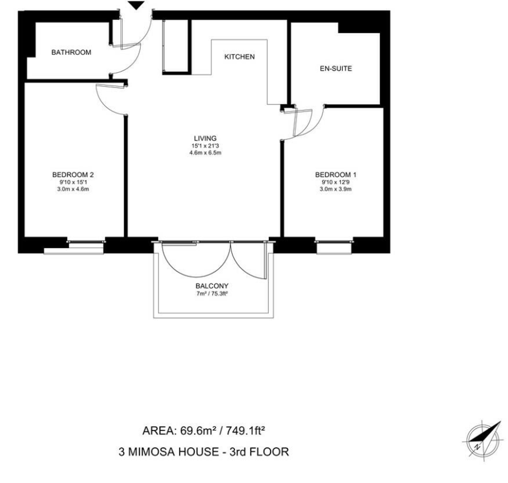 Located on the 3rd floor of Mimosa House, this light and bright, two bedroom, two bathroom home is available to rent fully-furnished.