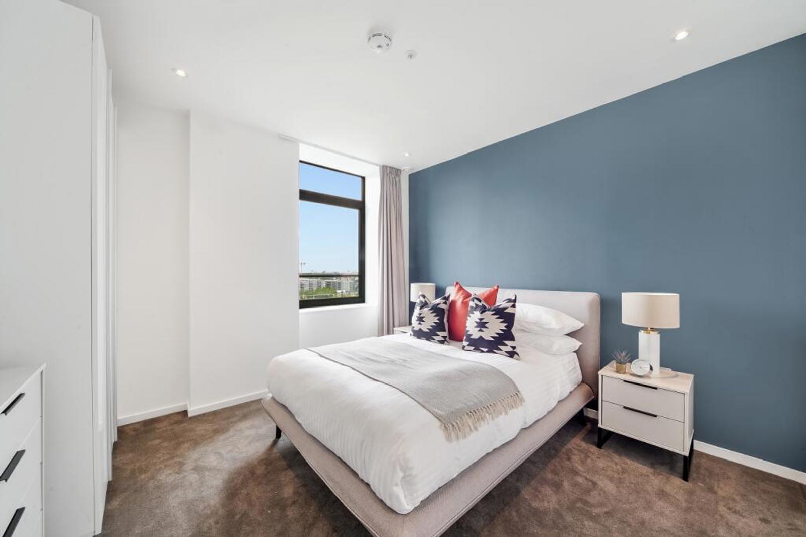 This East Village apartment sits within Portlands – a popular spot thanks to its tree-lined boulevards and tranquil water features. The double bedrooms come complete with built-in wardrobes, a chest of draws and side-tables. While kitchens are fully integrated with appliances including a multi-functional oven and induction hob. A private balcony connects the open plan kitchen and living area to the great outdoors – overlooking East Village’s parks and ponds.