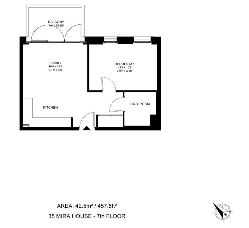 Located on the 7th floor of Mira House, this light and bright, one bedroom, one bathroom home is available to rent fully-furnished.