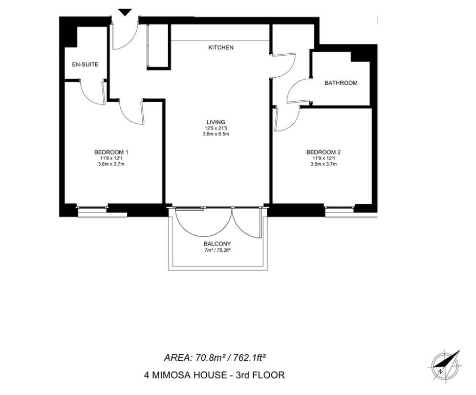 Located on the 3rd floor of Mimosa House, this light and bright, two bedroom, two bathroom home is available to rent fully-furnished.