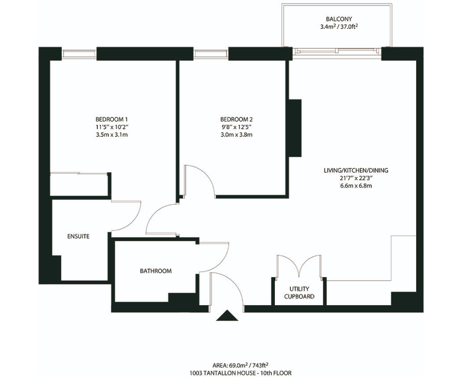 Situated on the 10th floor of Tantallon House, this two bedroom, two bathroom home is available to rent fully-furnished.