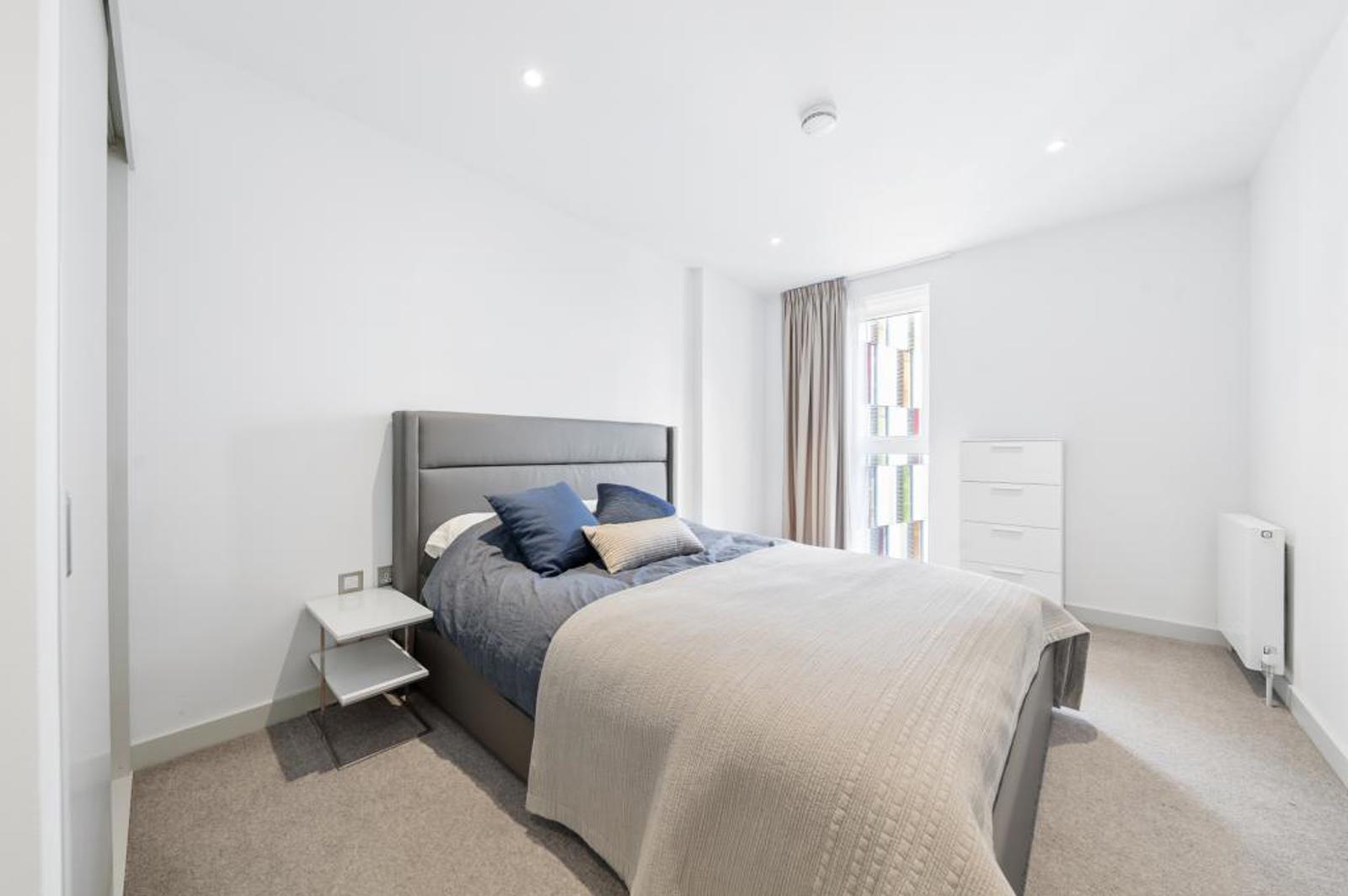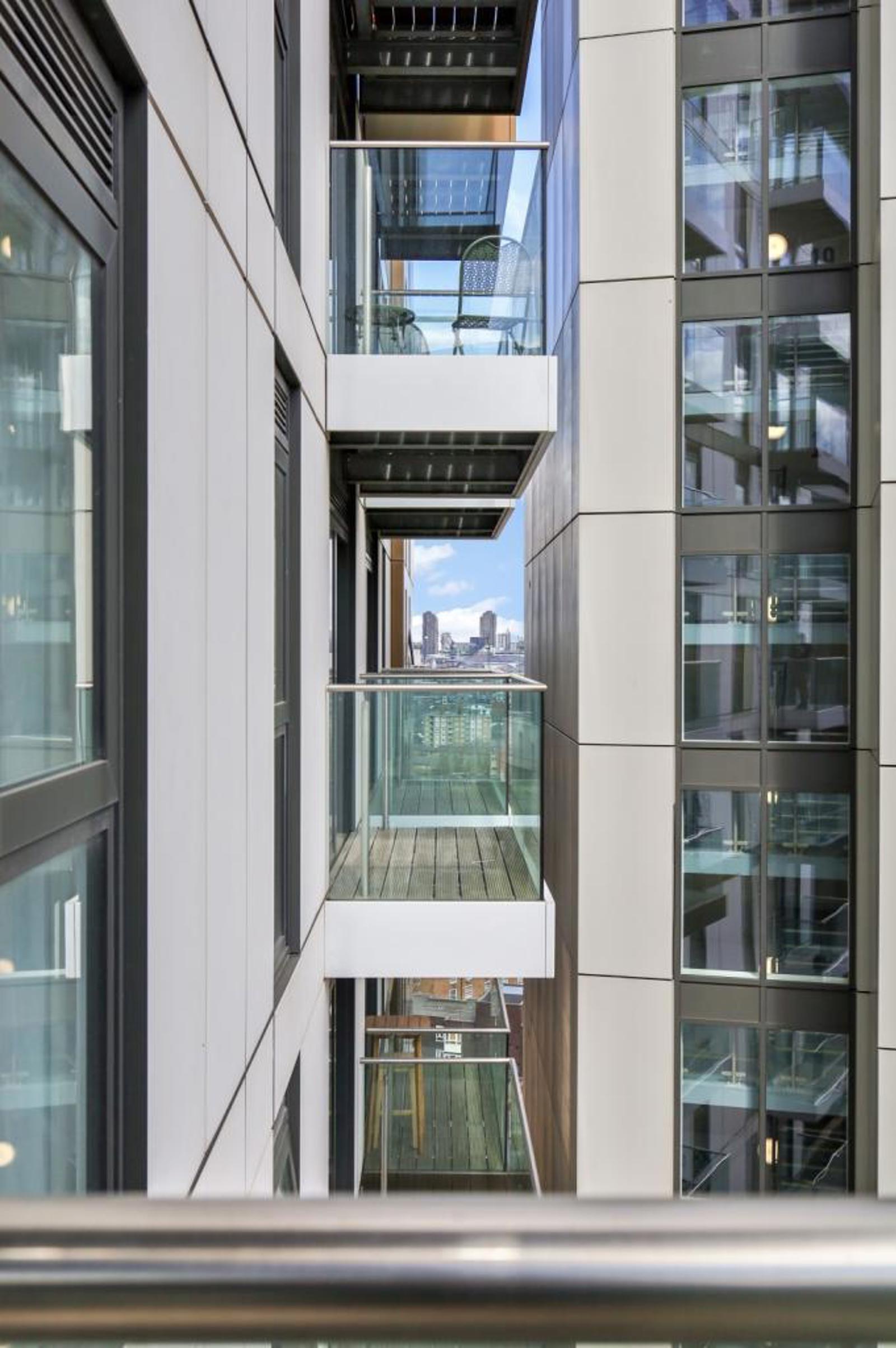 This spacious apartment features an open-plan living area for the kitchen, lounge and dining spaces, with the addition of a large balcony where you can take in some of the best views across London.