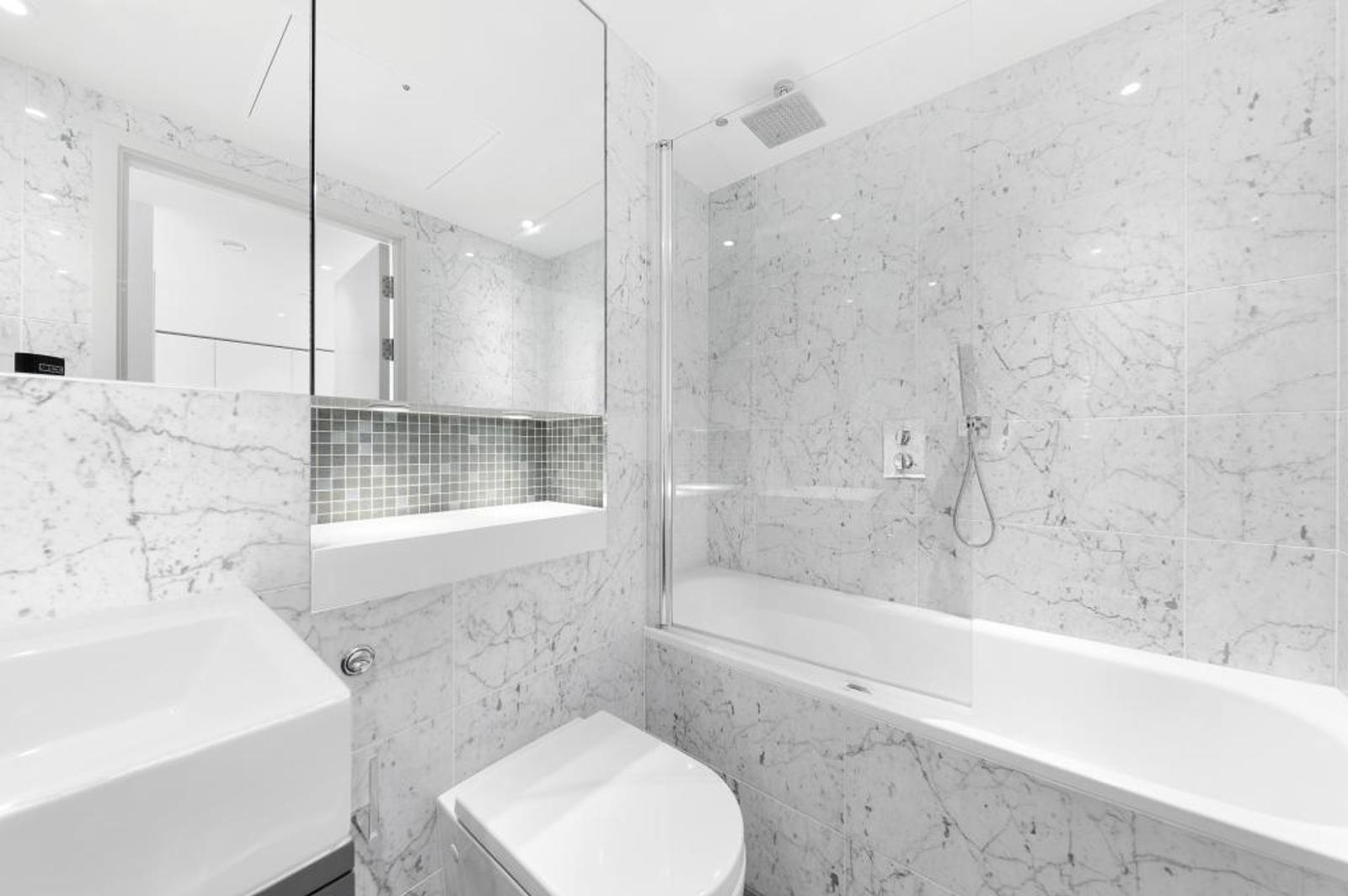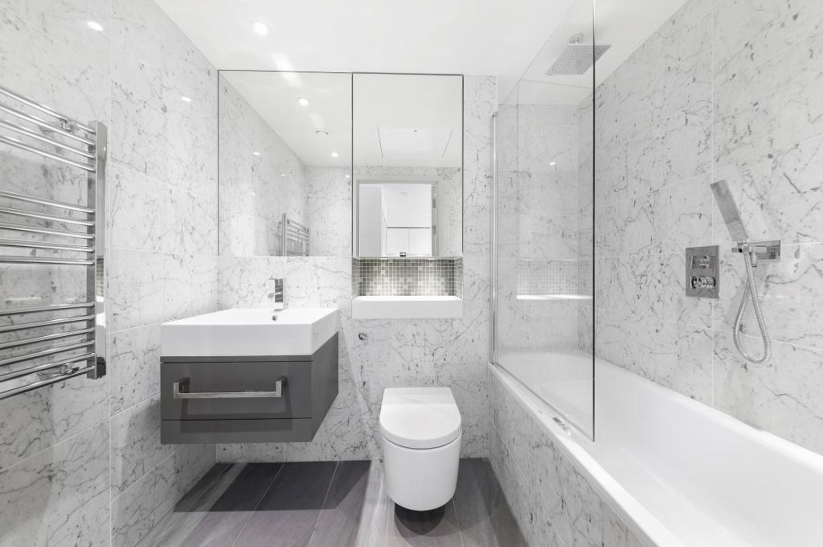 Integrated kitchens feature appliances including a multi-functional oven and induction hob and come with plenty of cupboard space. The bedrooms have built-in wardrobes, complemented by a chest of drawers and bedside tables. Marble bathrooms give this property an opulent yet timeless look, with heated mirrors (to prevent steaming) containing even more storage.