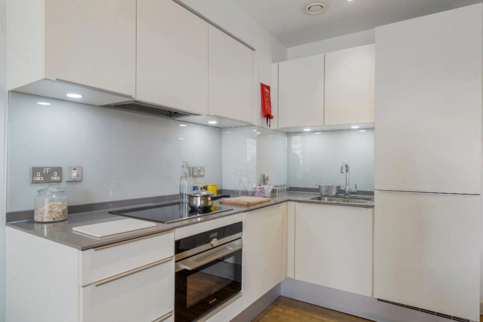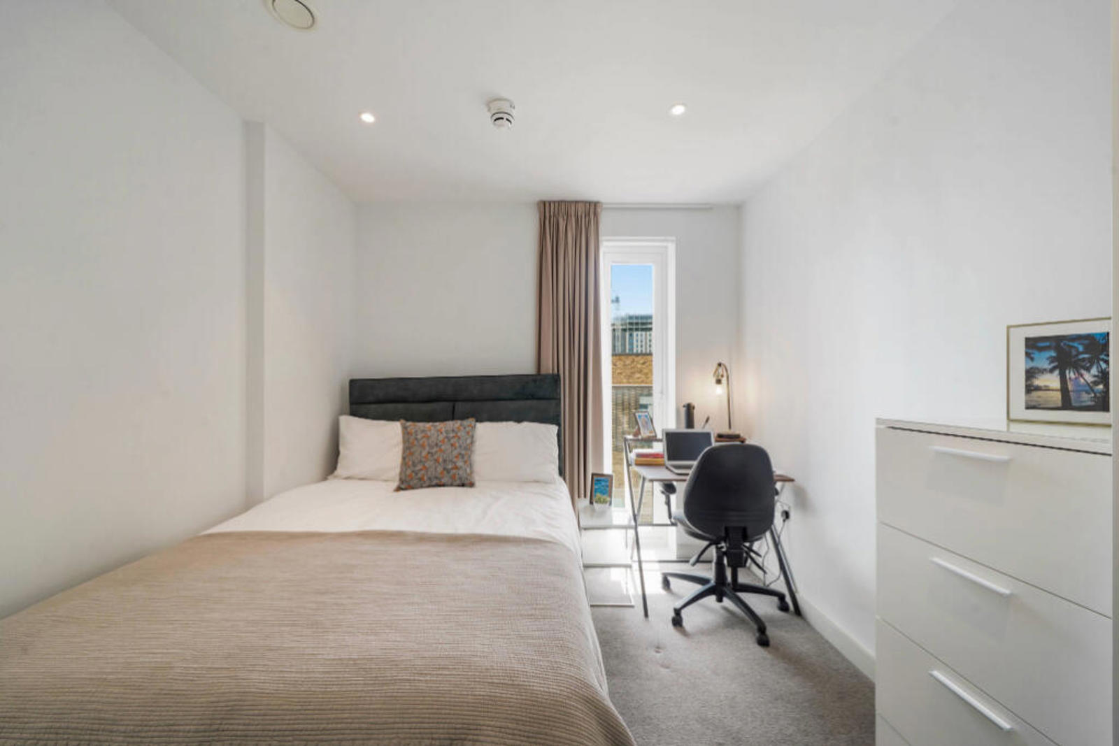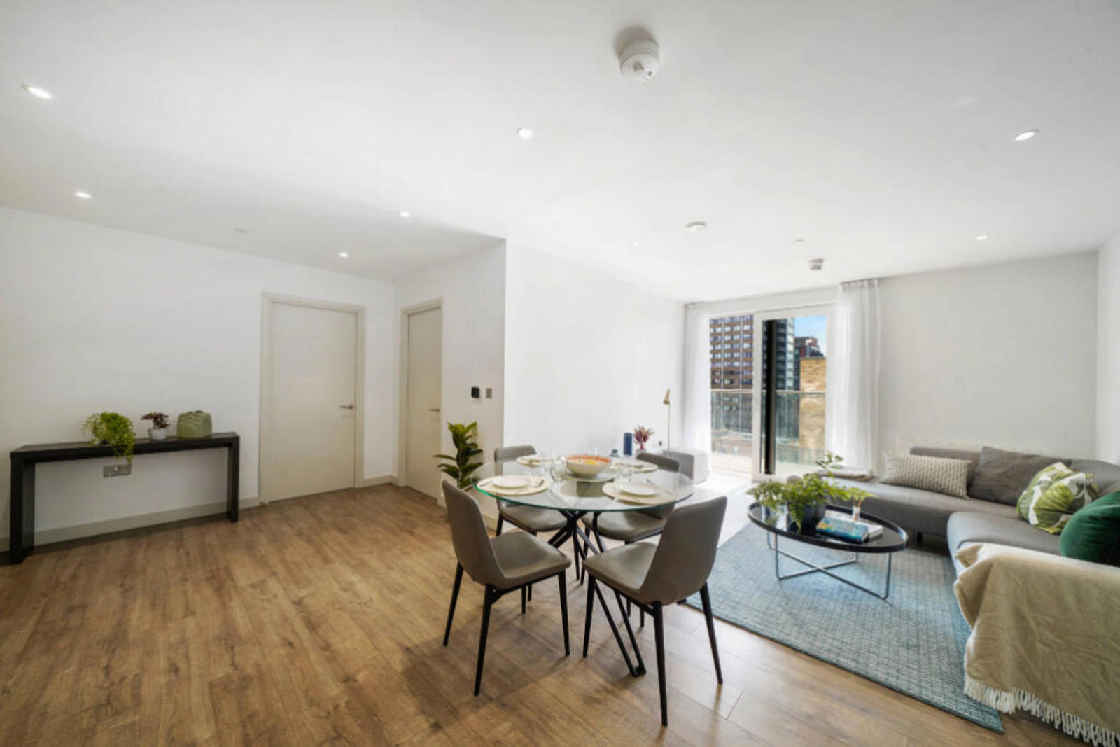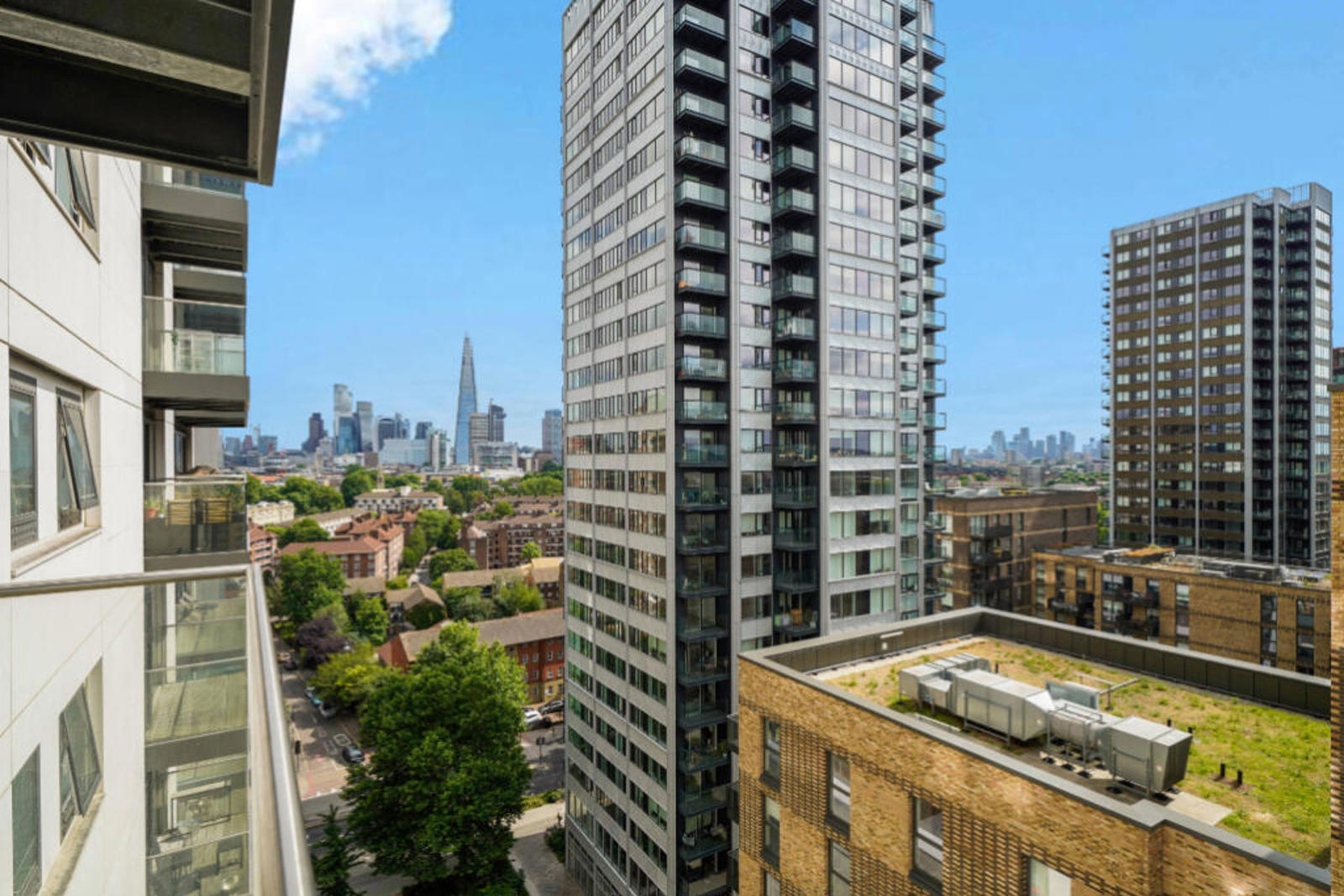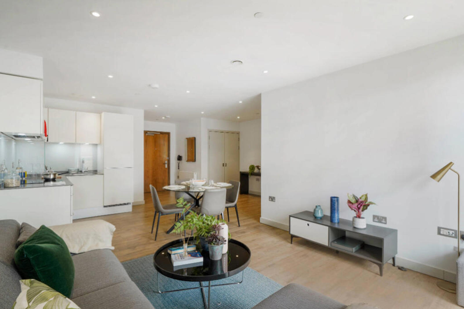 This spacious apartment features an open-plan living area for the kitchen, lounge and dining spaces, with the addition of a large balcony where you can take in some of the best views across London.