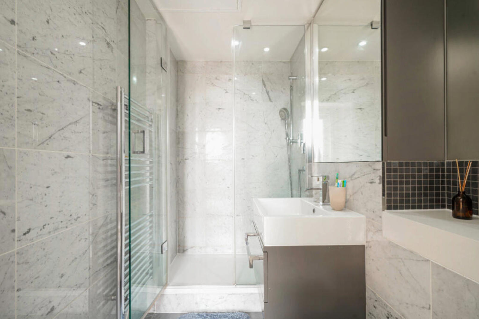 Integrated kitchens feature appliances including a multi-functional oven and induction hob and come with plenty of cupboard space. The bedroom have built-in wardrobes, complemented by a chest of drawers and bedside tables. Marble bathrooms give this property an opulent yet timeless look, with heated mirrors (to prevent steaming) containing even more storage.