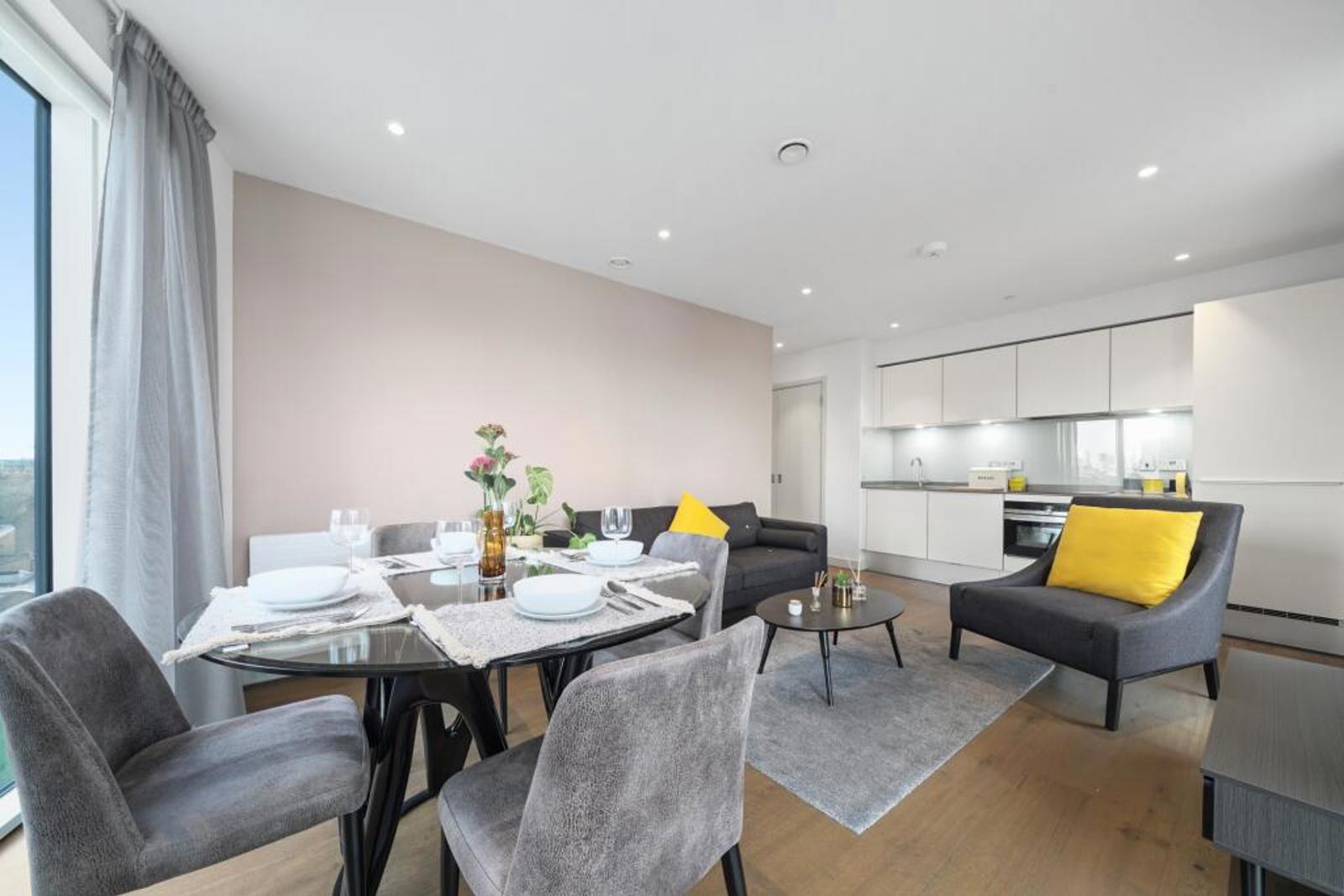 This spacious apartment features an open-plan living area for the kitchen, lounge and dining spaces, with the addition of a large balcony where you can take in some of the best views across London.