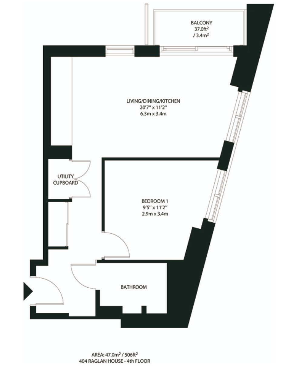 Situated on the 4th floor of Raglan House, this one bedroom, one bathroom home is available to rent fully-furnished.