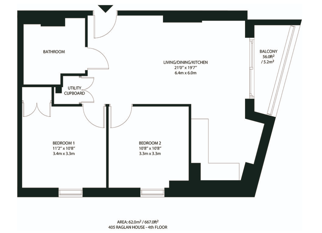 Situated on the 4th floor of Raglan House, this two bedroom, one bathroom home is available to rent fully-furnished.