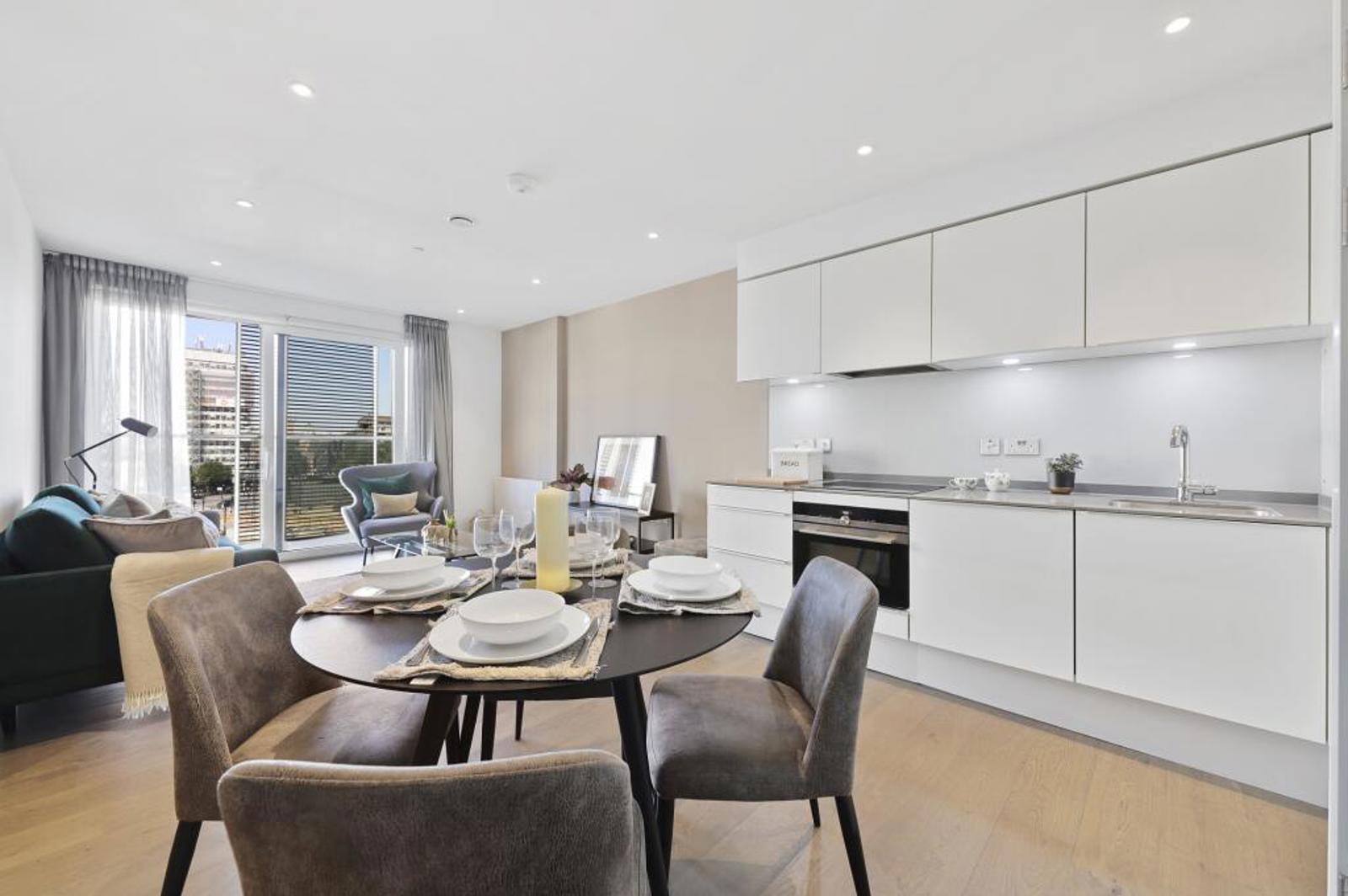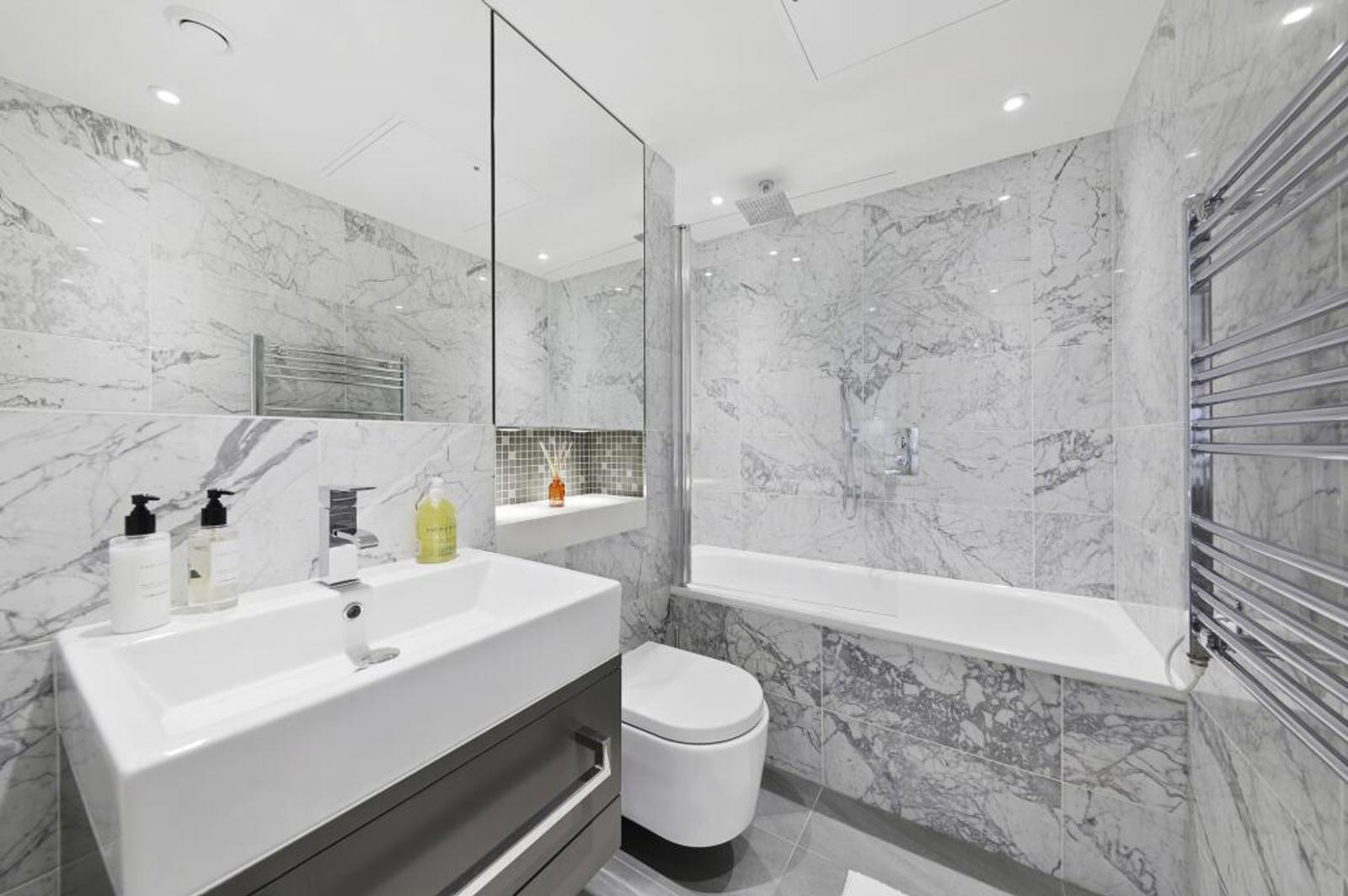 This spacious apartment features an open-plan living area for the kitchen, lounge and dining spaces, with the addition of a large balcony where you can take in some of the best views across London. Integrated kitchens feature appliances including a multi-functional oven and induction hob and come with plenty of cupboard space. The bedrooms have built-in wardrobes, complemented by a chest of drawers and bedside tables. Marble bathrooms give this property an opulent yet timeless look, with heated mirrors (to prevent steaming) containing even more storage.