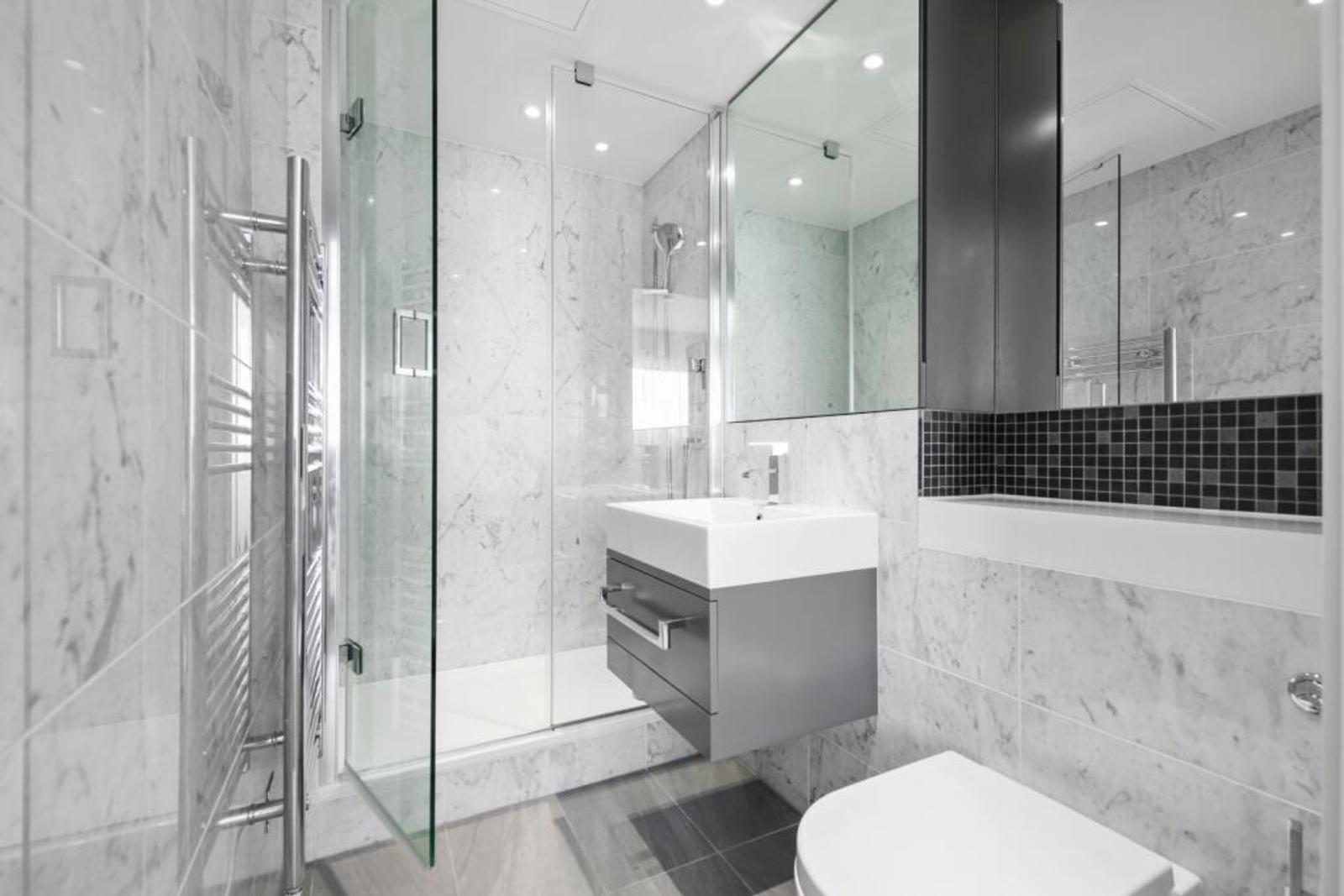 This spacious apartment features an open-plan living area for the kitchen, lounge and dining spaces, with the addition of a large balcony where you can take in some of the best views across London. Integrated kitchens feature appliances including a multi-functional oven and induction hob and come with plenty of cupboard space. The master room has a spacious ensuite, creating more privacy and space if you’re sharing. The bedrooms both have built-in wardrobes, complemented by a chest of drawers and bedside tables. Marble bathrooms give this property an opulent yet timeless look, with heated mirrors (to prevent steaming) containing even more storage.