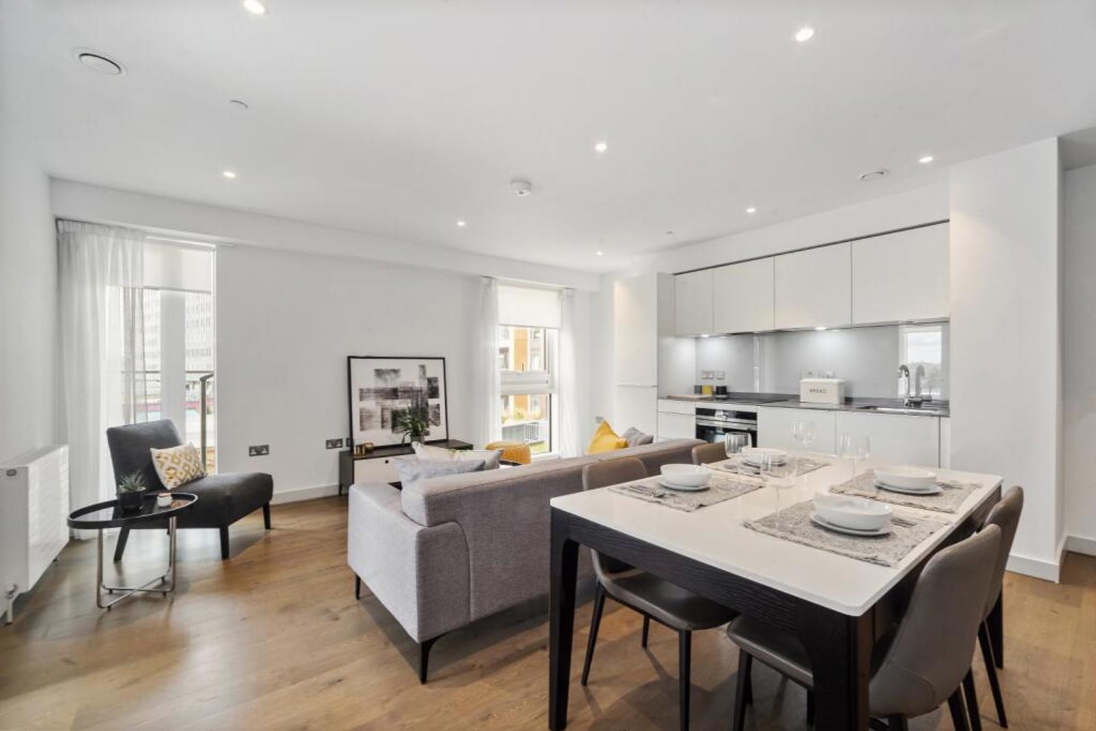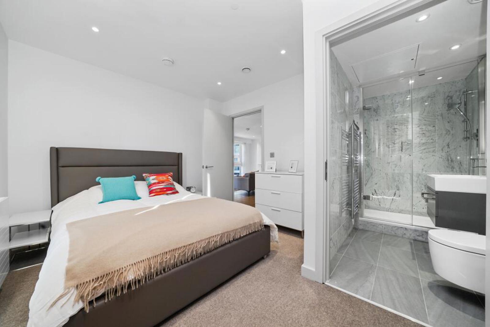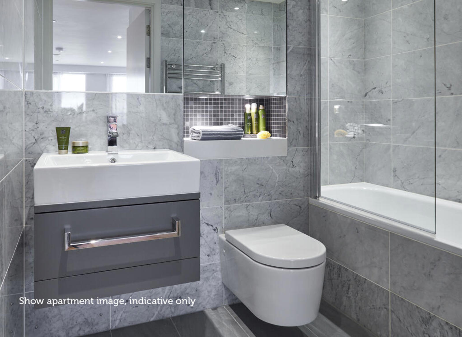 This spacious apartment features an open-plan living area for the kitchen, lounge and dining spaces, with the addition of a large balcony where you can take in some of the best views across London. Integrated kitchens feature appliances including a multi-functional oven and induction hob and come with plenty of cupboard space. The master room has a spacious ensuite, creating more privacy and space if you’re sharing. The bedrooms both have built-in wardrobes, complemented by a chest of drawers and bedside tables. Marble bathrooms give this property an opulent yet timeless look, with heated mirrors (to prevent steaming) containing even more storage.