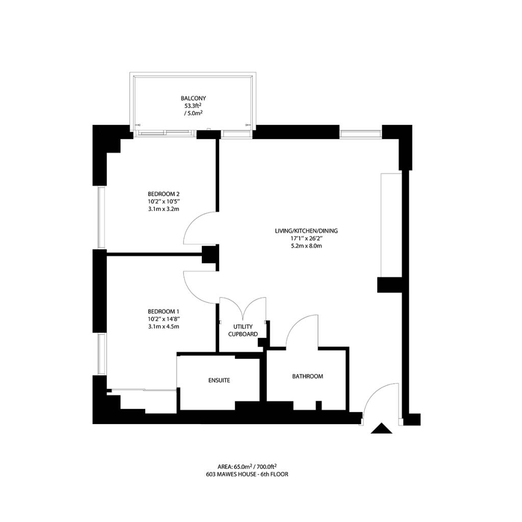 Situated on the 6th floor of Mawes House, this two bedroom, two bathroom home is available to rent fully-furnished from October.