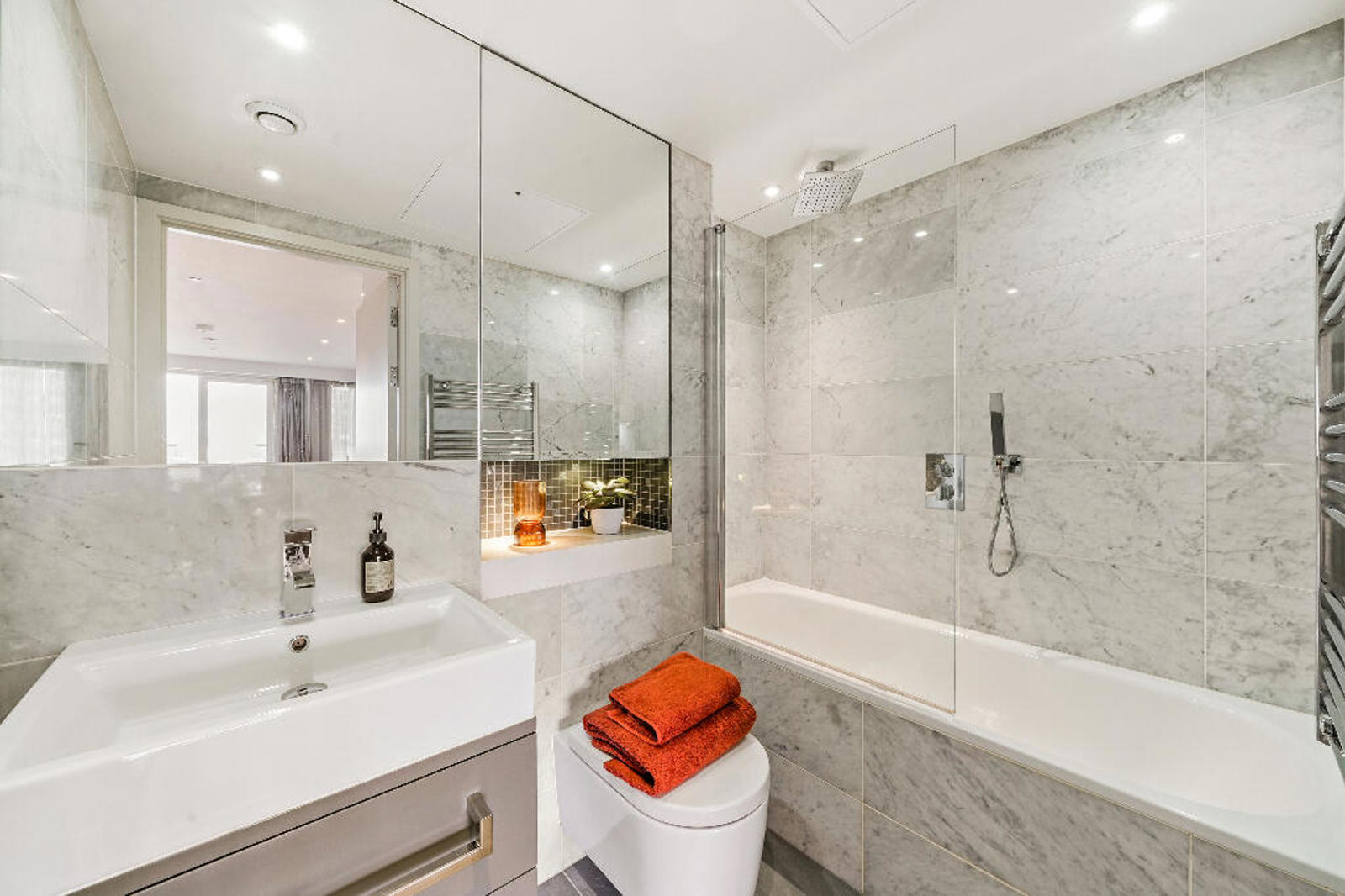This spacious apartment features an open-plan living area for the kitchen, lounge and dining spaces, with the addition of a large balcony where you can take in some of the best views across London.