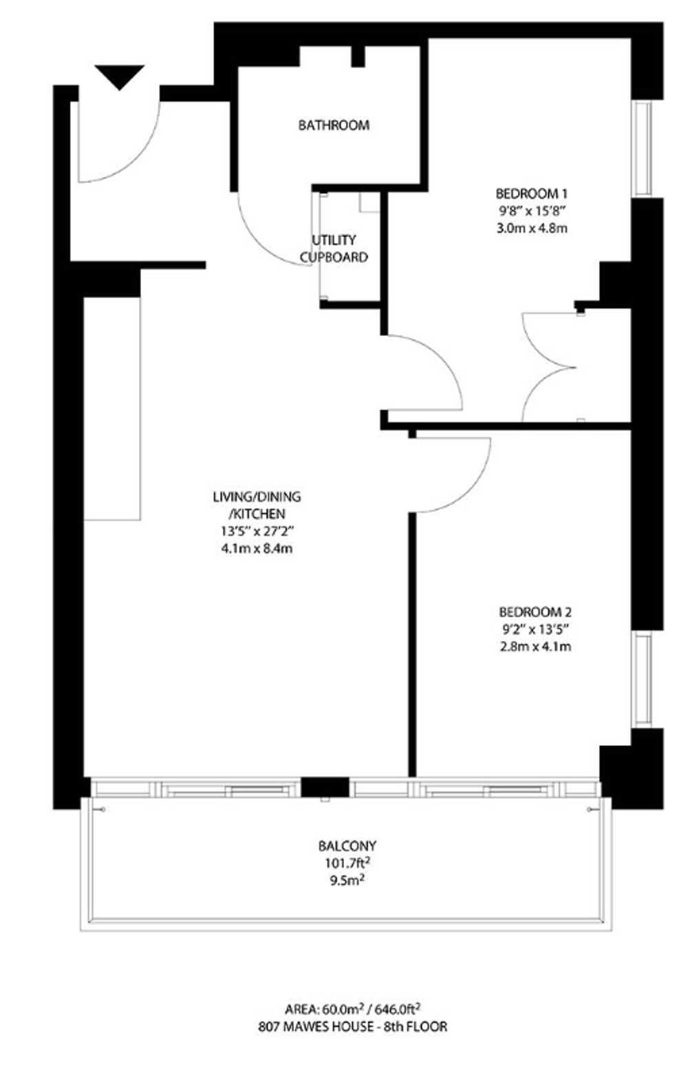 Situated on the 8th floor of Mawes House, this two bedroom, two bathroom home is available to rent fully-furnished.