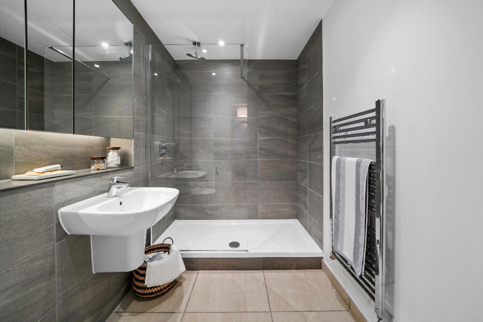 The double bedroom  comes complete with built-in wardrobes, a chest of draws and side-tables. The bathroom is completed with a rainfall showerhead and heated mirrors to prevent steaming, with hidden storage.