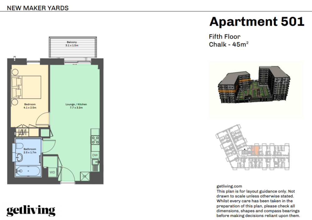 Located on the 1st floor of our Chalk building, this light and bright, one bedroom, one bathroom home is available to rent fully-furnished.