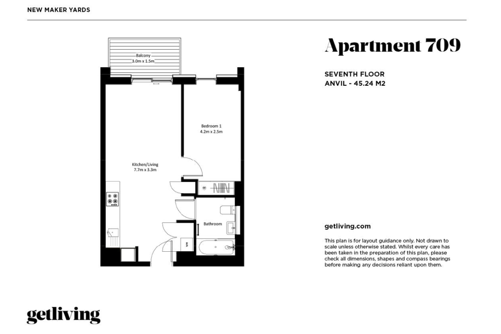Located on the 7th floor of our Anvil building, this light and bright, one bedroom, one bathroom home is available to rent fully-furnished from July.