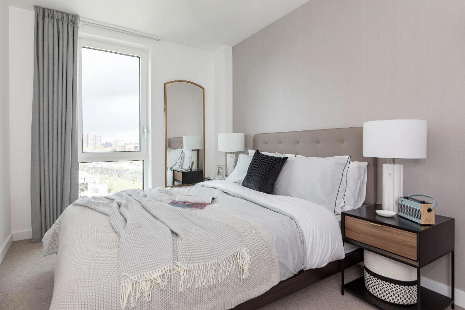 Open the door of this modern home to a generous open-plan kitchen and living space, furnished with a sofa, comfy armchair, coffee table and TV unit. Integrated kitchens feature appliances including a multi-functional oven and induction hob. A private balcony connects the living area to the great outdoors. The double bedroom comes complete with built-in wardrobes, a chest of draws and side-tables. The bathroom is completed with a rainfall showerhead and heated mirrors to prevent steaming, with hidden storage.