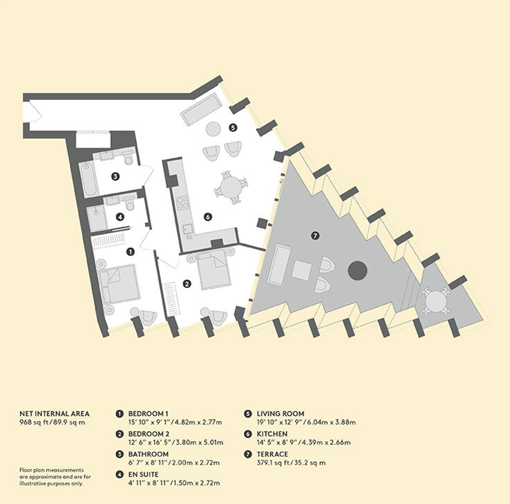 This apartment is truly one of a kind. Featuring a spacious open-plan reception and kitchen area that flows seamlessly onto a vast private terrace with breathtaking river views. The contemporary design is complemented by floor-to-ceiling windows, flooding the space with natural light and showcasing stunning panoramas.