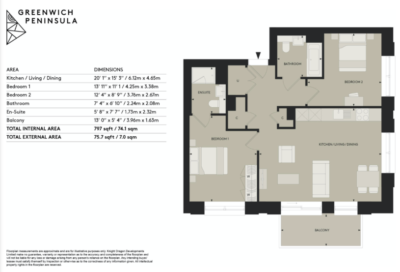 This BRAND NEW, two-bedroom apartment sits on the 8th floor of the building with unobstructed views out over the peninsula. It features 792 sqft of internal space, including two bathrooms, a large open-plan living/kitchen area and built-in storage facilities, alongside an additional balcony.