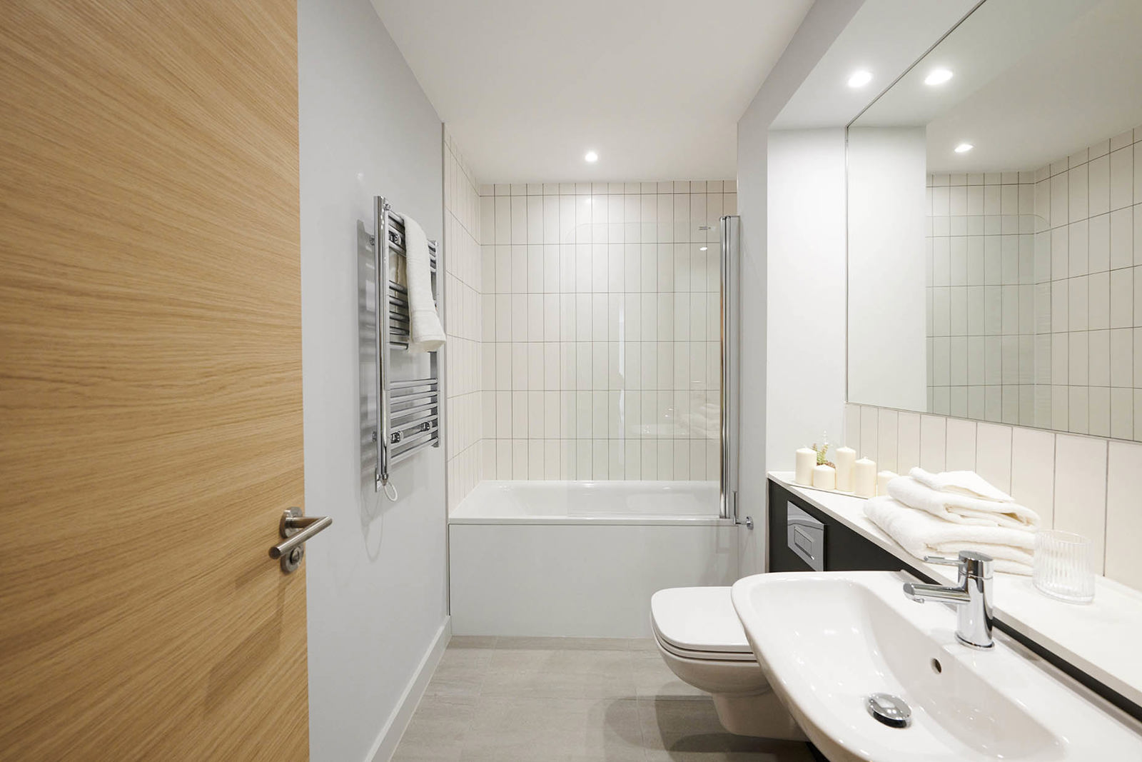 Bathrooms boast large mirrors and overhead showers for a modern finish, with two and three bedroom apartments offering an en suite for more privacy with walk-in showers.