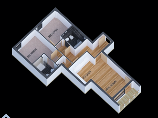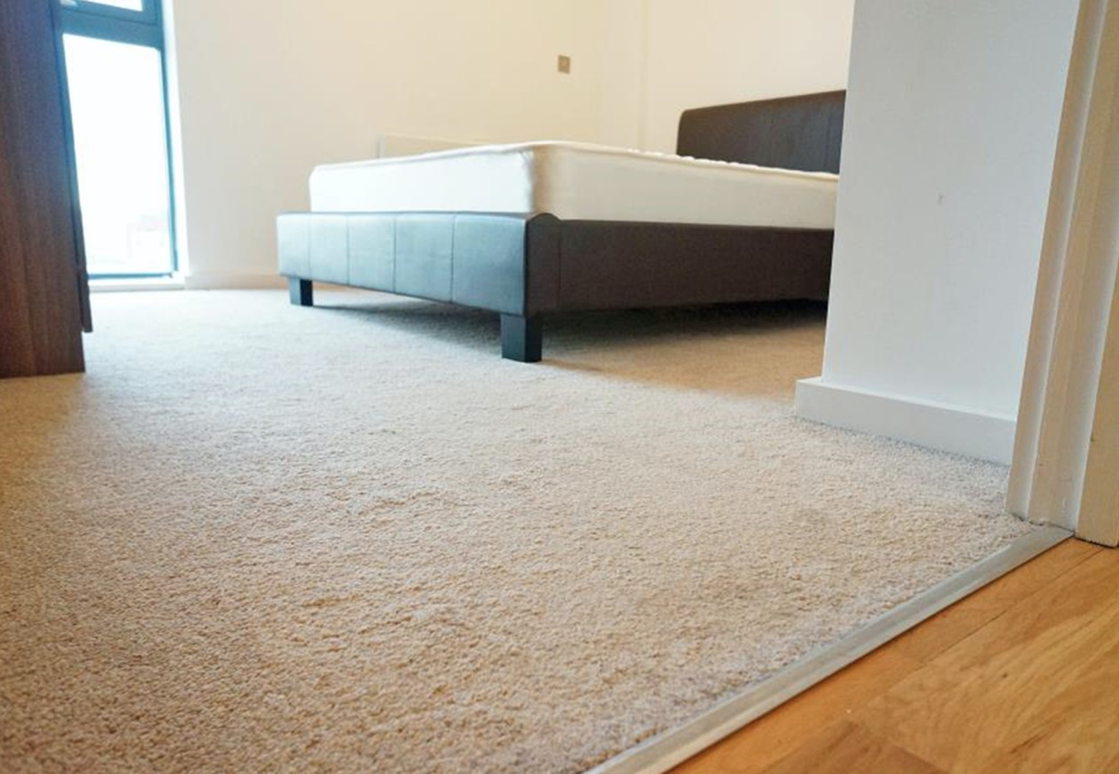 - Oak laminate flooring with carpeted bedroom