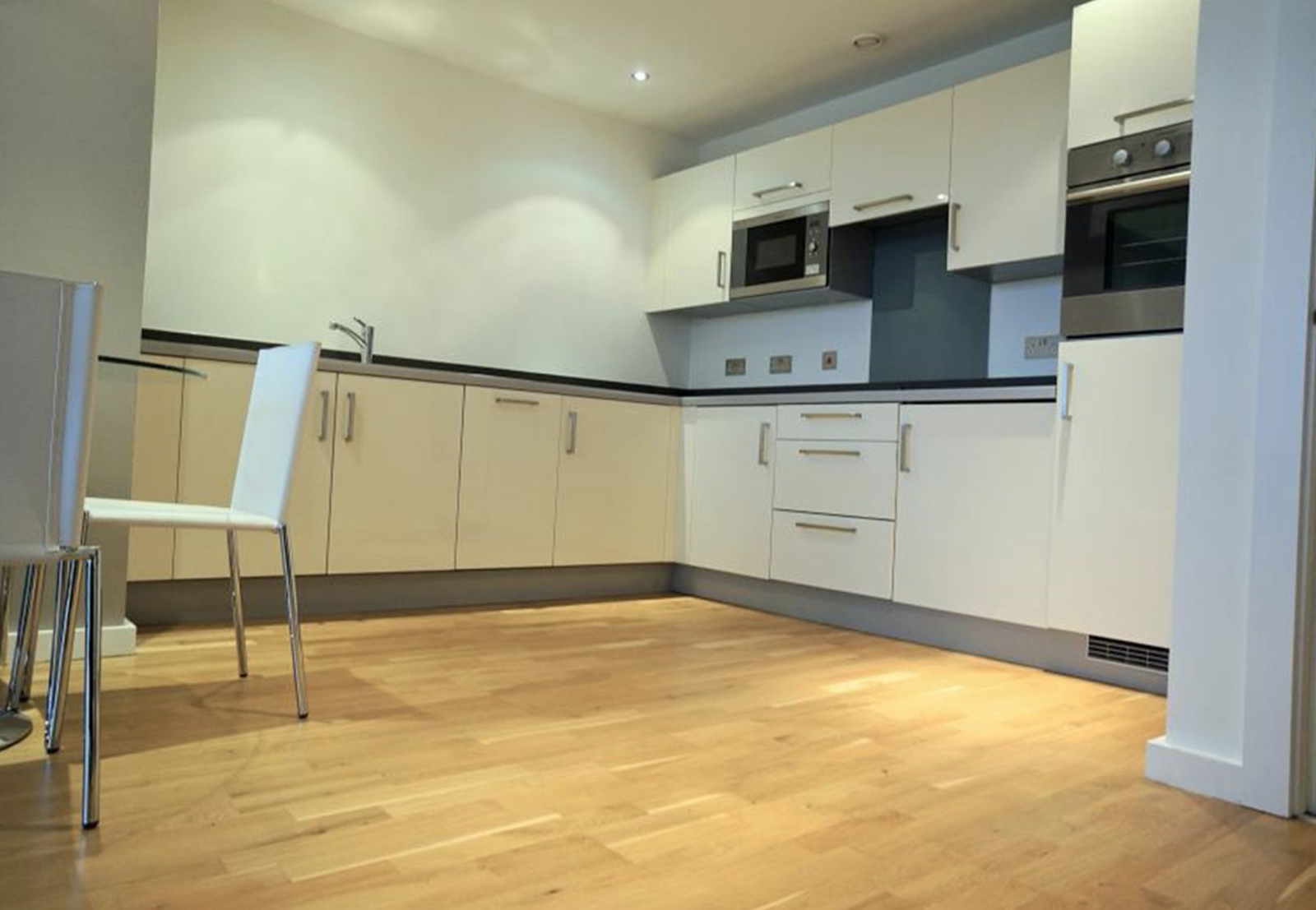 - Contemporary kitchen with fully intergrated integrated appliances including dishwasher, microwave and washer / dryer
