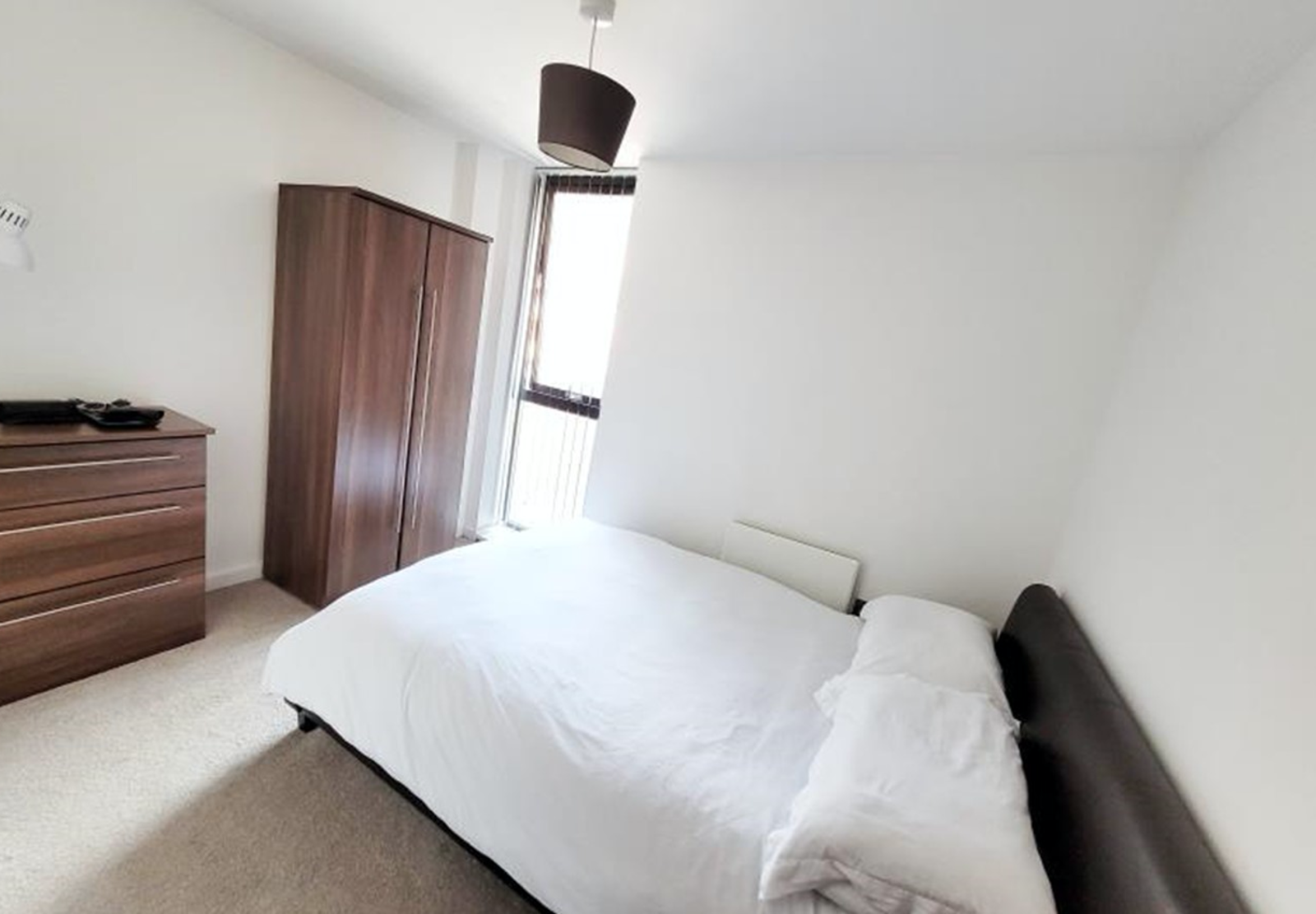 - Oak laminate flooring with carpeted bedroom