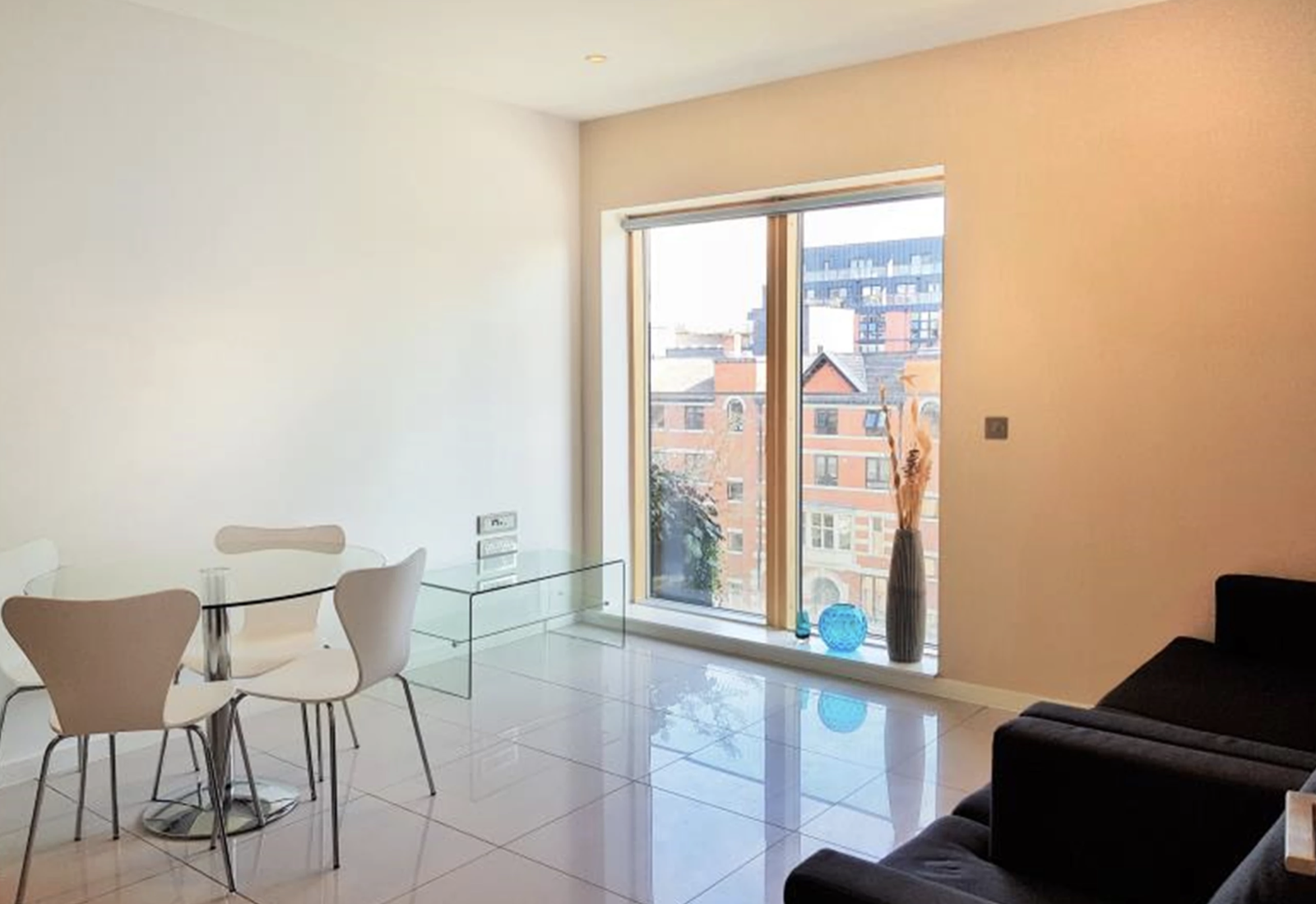 A stunning two bedroom furnished apartment, located on the fourth floor, with private balcony overlooking Cutting Room Square in Ancoats.
