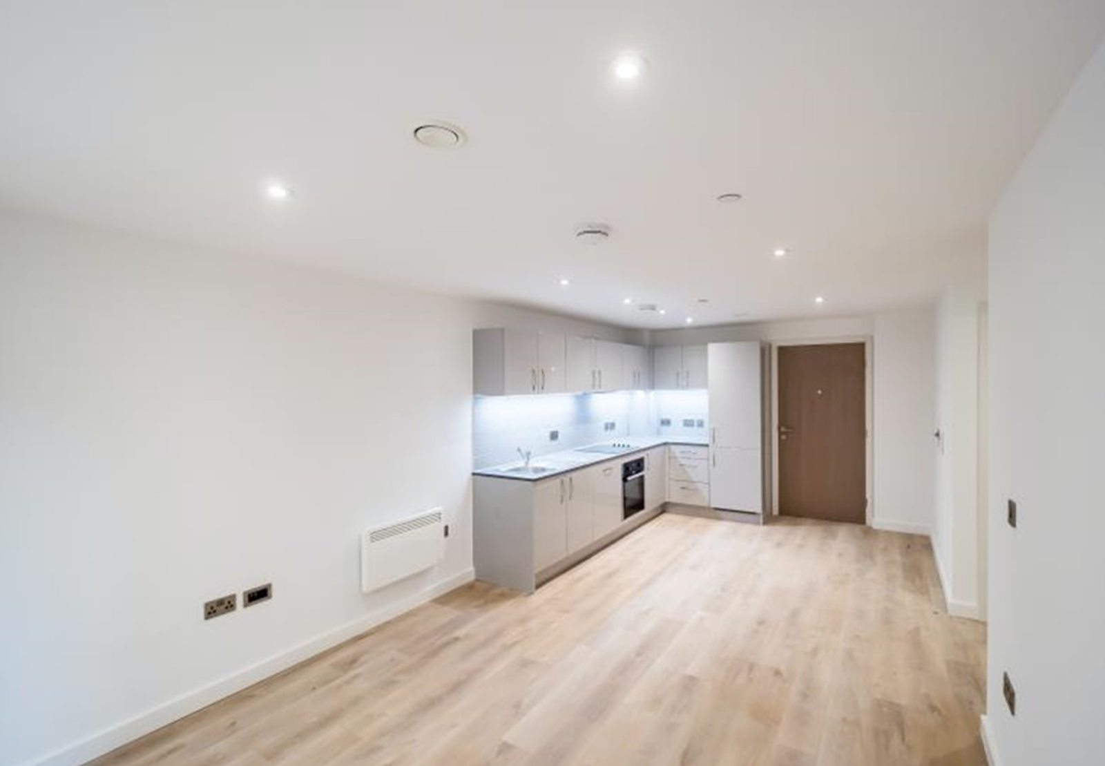 The apartment comprises of an open plan living and kitchen area, with ample worktop and cupboard space, fully integrated appliances, a Juliette balcony and large floor-to-ceiling windows allowing floods of natural light to the living room.