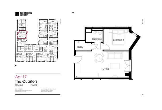 Managed by Northern Group, we are pleased to present this stunning one bedroom apartment on the 2nd floor of The Quarters in the heart of Manchester’s Northern Quarter.