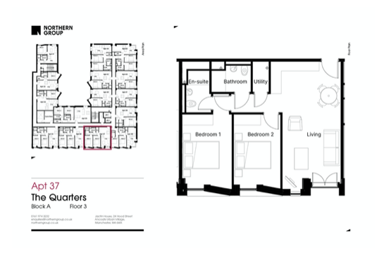 Luxury two bedroom furnished apartment located on the 3rd floor of the Quarters in the heart of Mancheste's Northern Quarter.