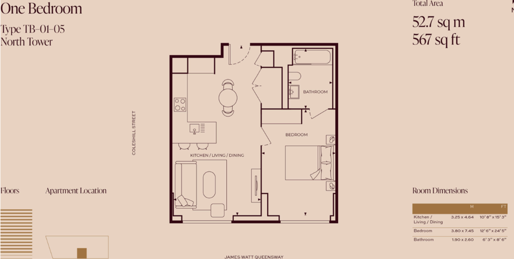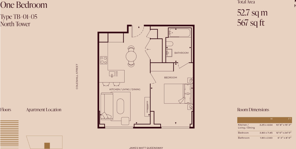 1 Bedroom - Apt 110, One Eastside - £1,405 pcm