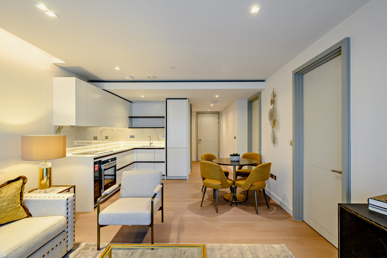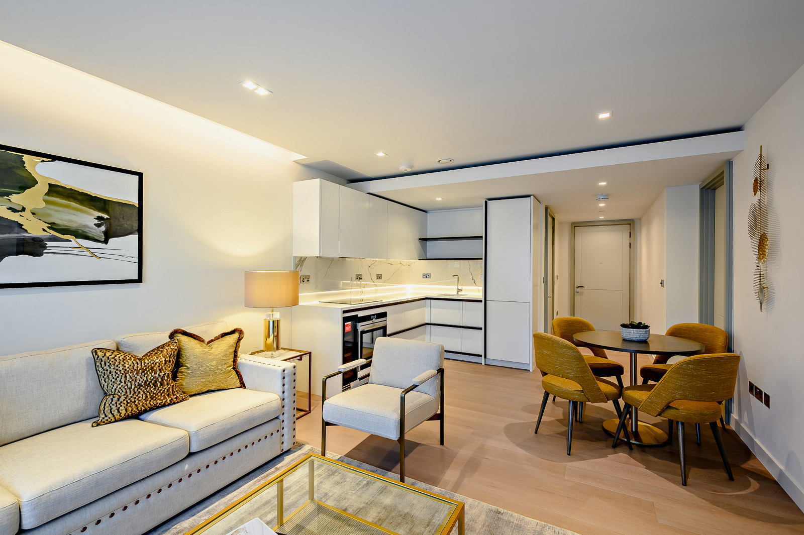 Apartments to Rent by Residential Land in Garrett Mansions, West End Gate, Paddington, Greater London, W2, living kitchen area