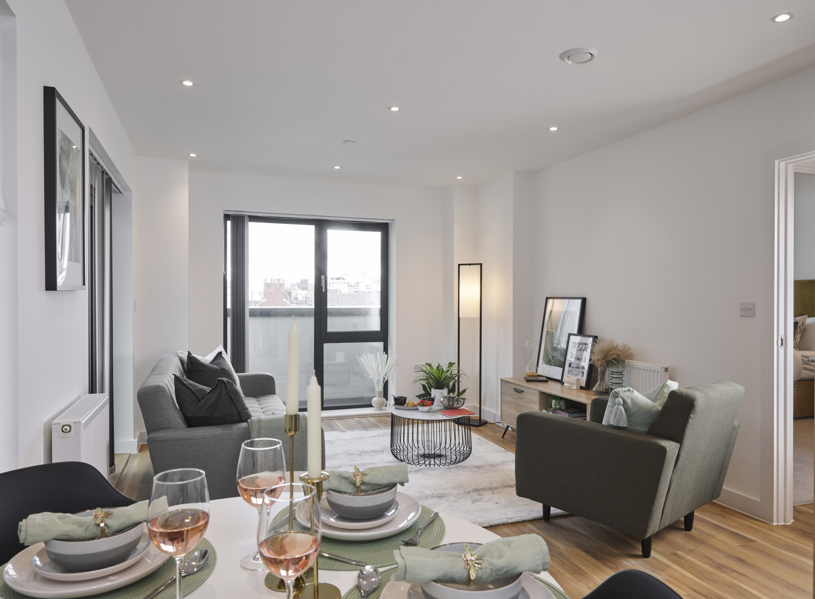 - Light wood effect flooring in living areas